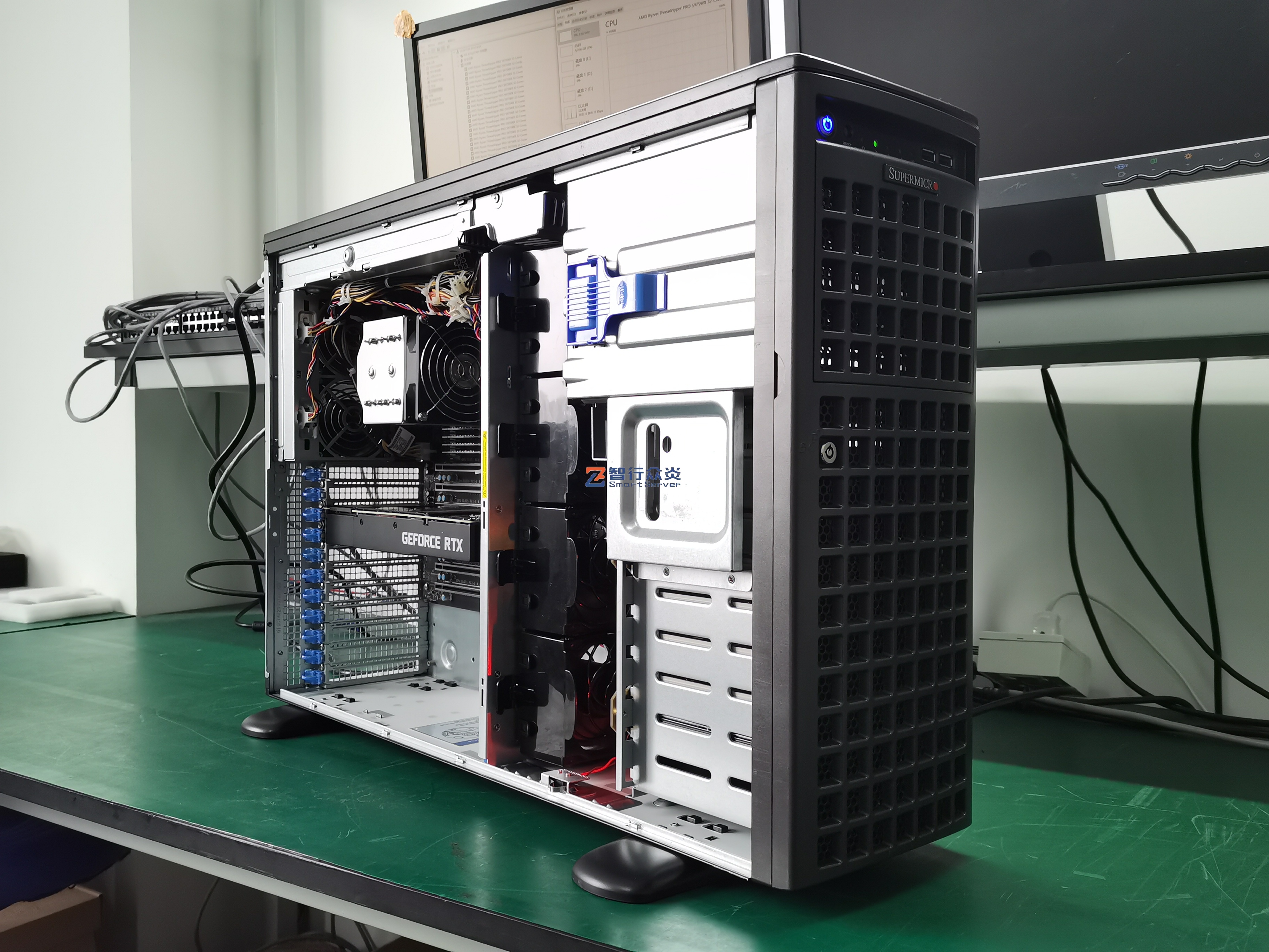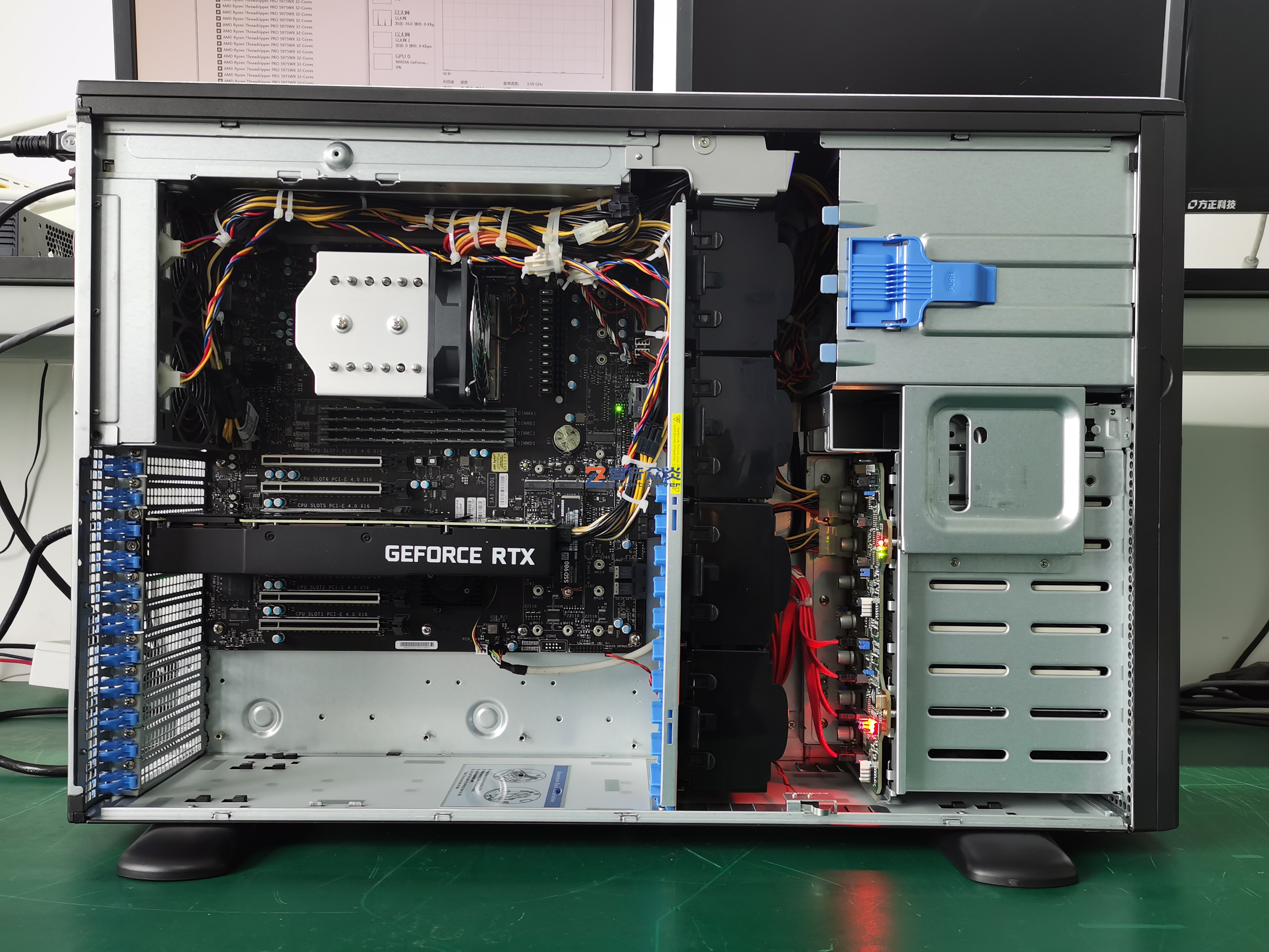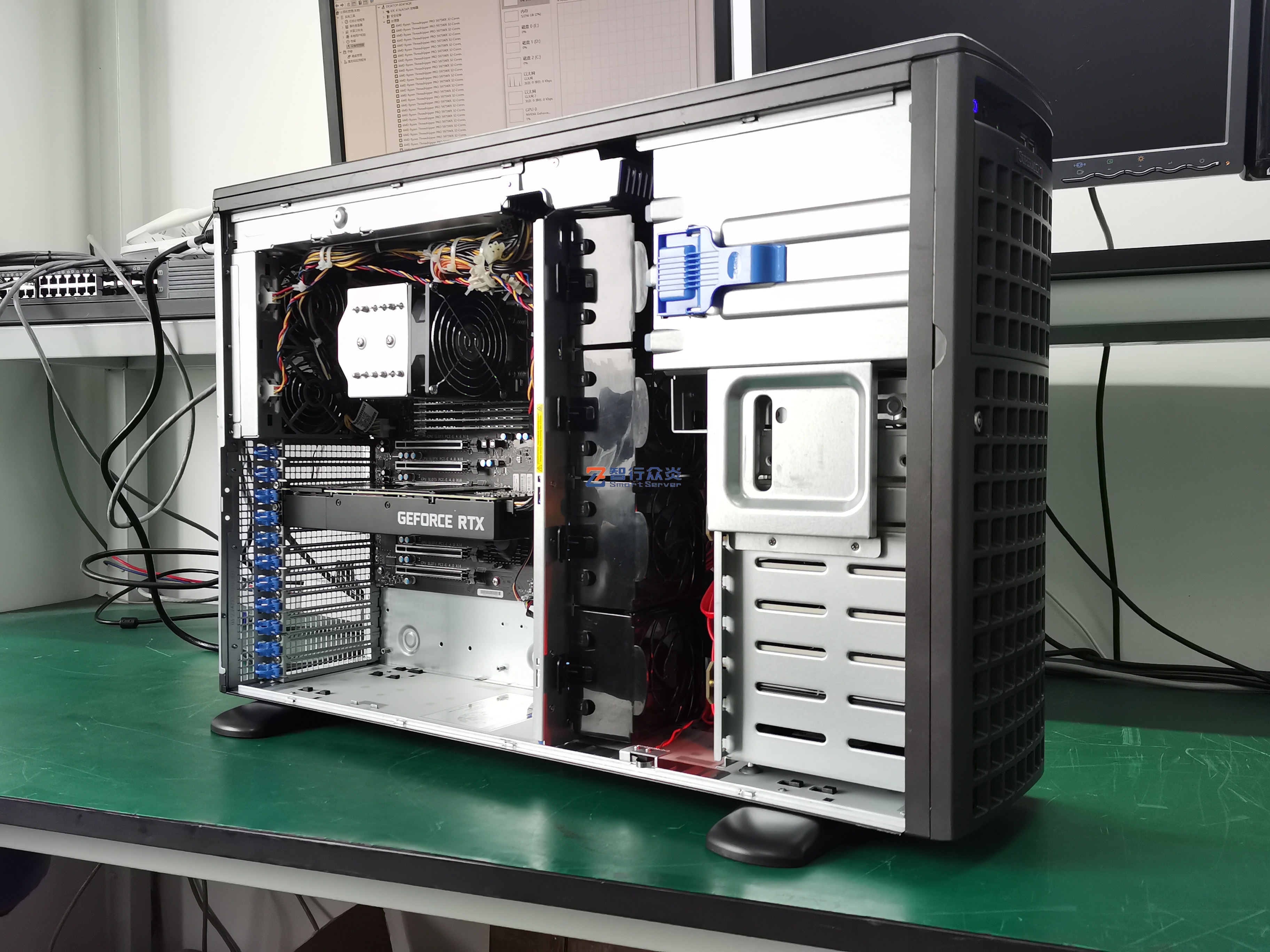 ZXZY-747-M12-3090 AMD 塔式 单路标准服务器,支持1颗 AMD Ryzen Threadripper PRO 5000WX/3000WX Series Processor, 8 DIMM DDR4 内存插槽,集成4 个M.2 接口,2个NVME U.2接口,1个千兆电口(IPMI共享网口),1个万兆电口,6个PCIe 扩展插槽,能适用于高性能计算、数据库、软件应用、大数据处理、企业市场、电信业务应用、图形设计、视频编辑、影视动画、人工智能、虚拟仿真、云计算应用等需求。
