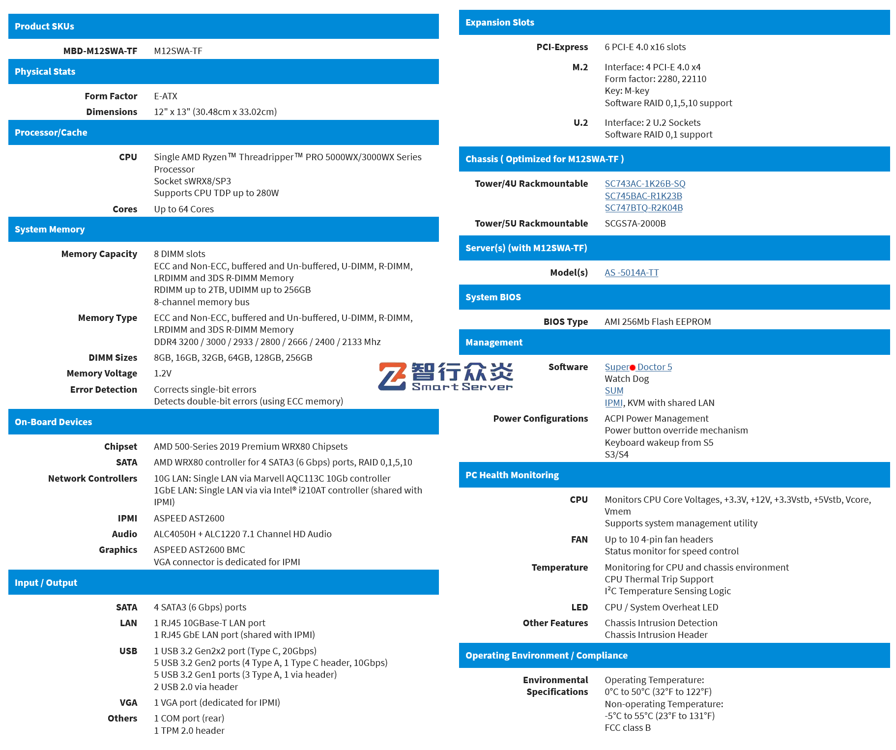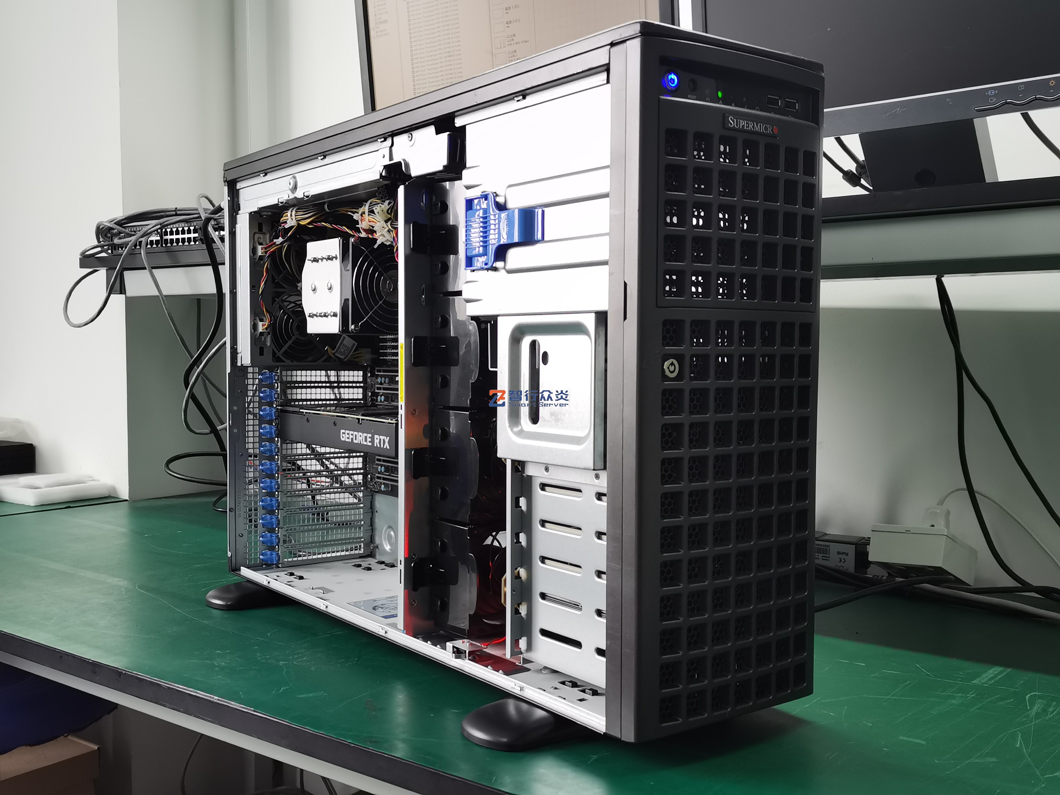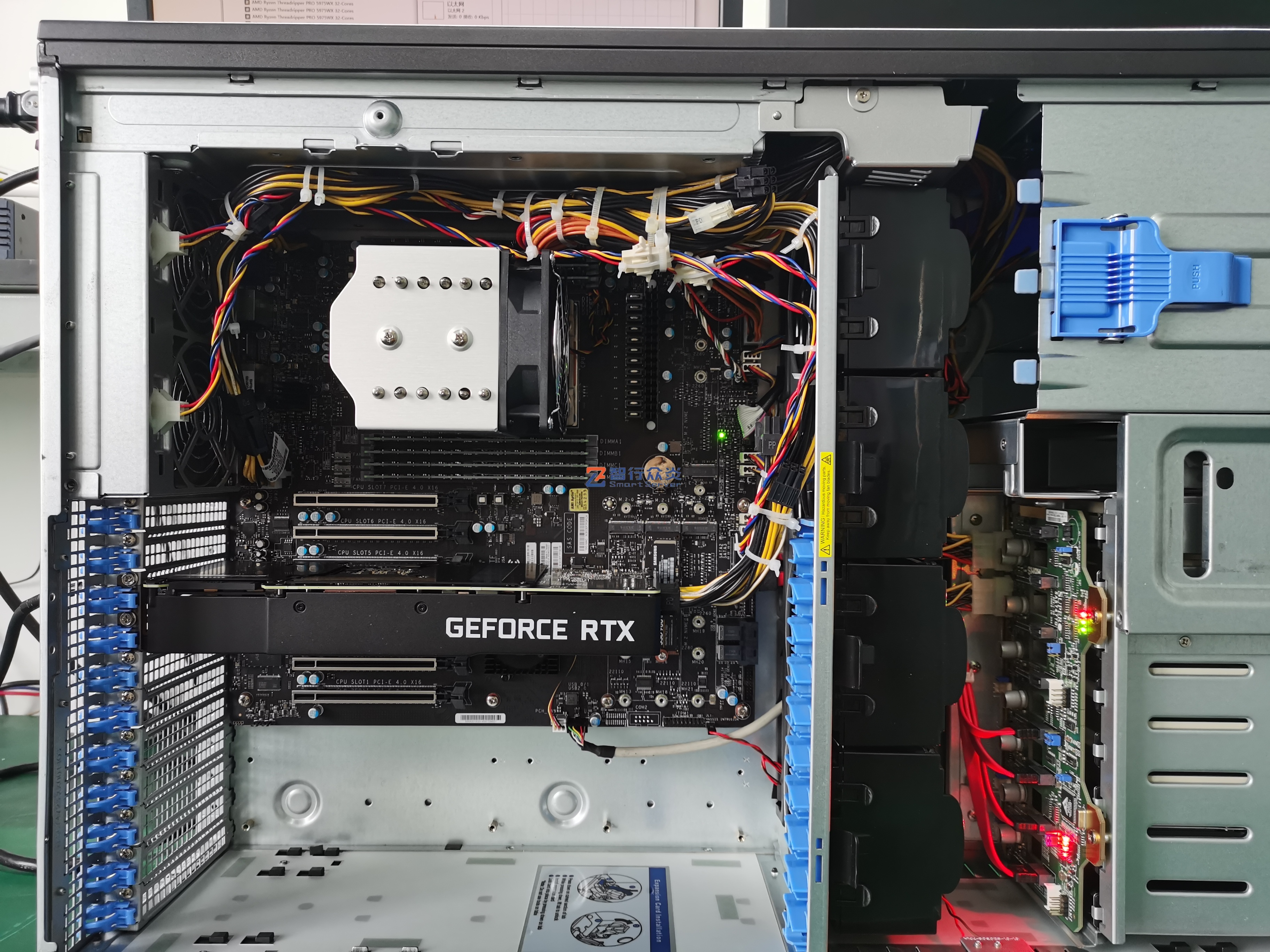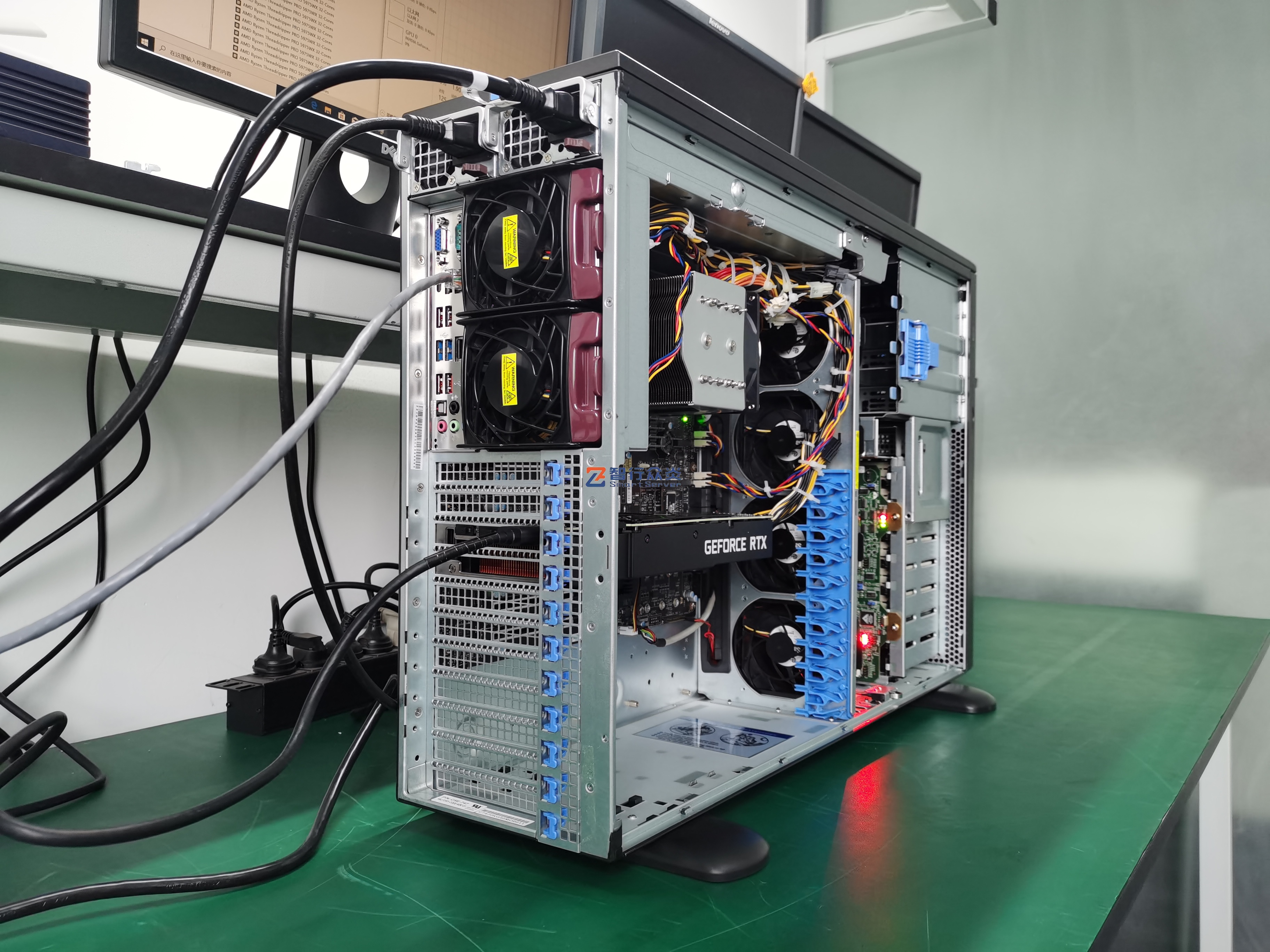 ZXZY-747-M12-3090 AMD 塔式 单路标准服务器,支持1颗 AMD Ryzen Threadripper PRO 5000WX/3000WX Series Processor, 8 DIMM DDR4 内存插槽,集成4 个M.2 接口,2个NVME U.2接口,1个千兆电口(IPMI共享网口),1个万兆电口,6个PCIe 扩展插槽,能适用于高性能计算、数据库、软件应用、大数据处理、企业市场、电信业务应用、图形设计、视频编辑、影视动画、人工智能、虚拟仿真、云计算应用等需求。