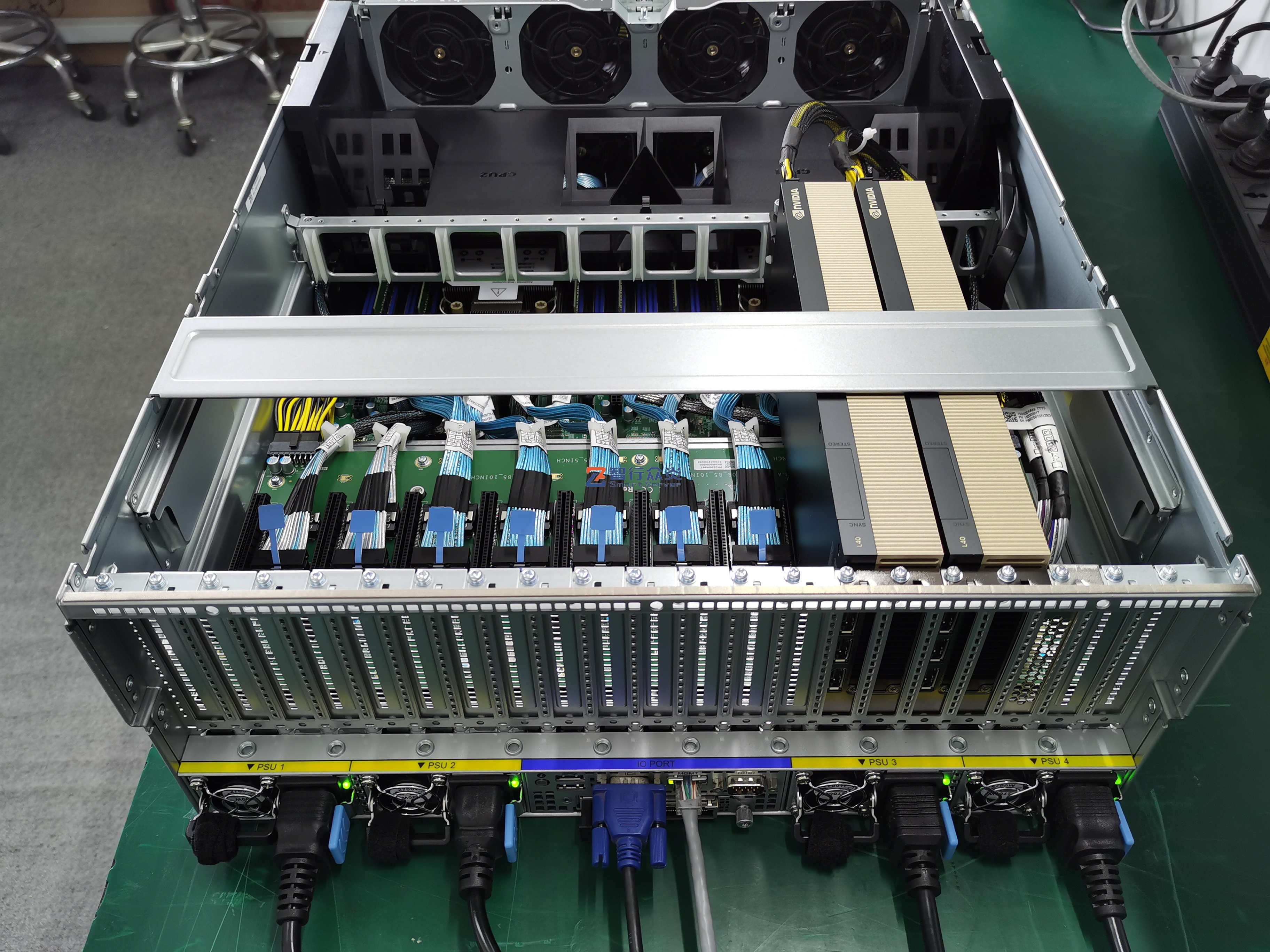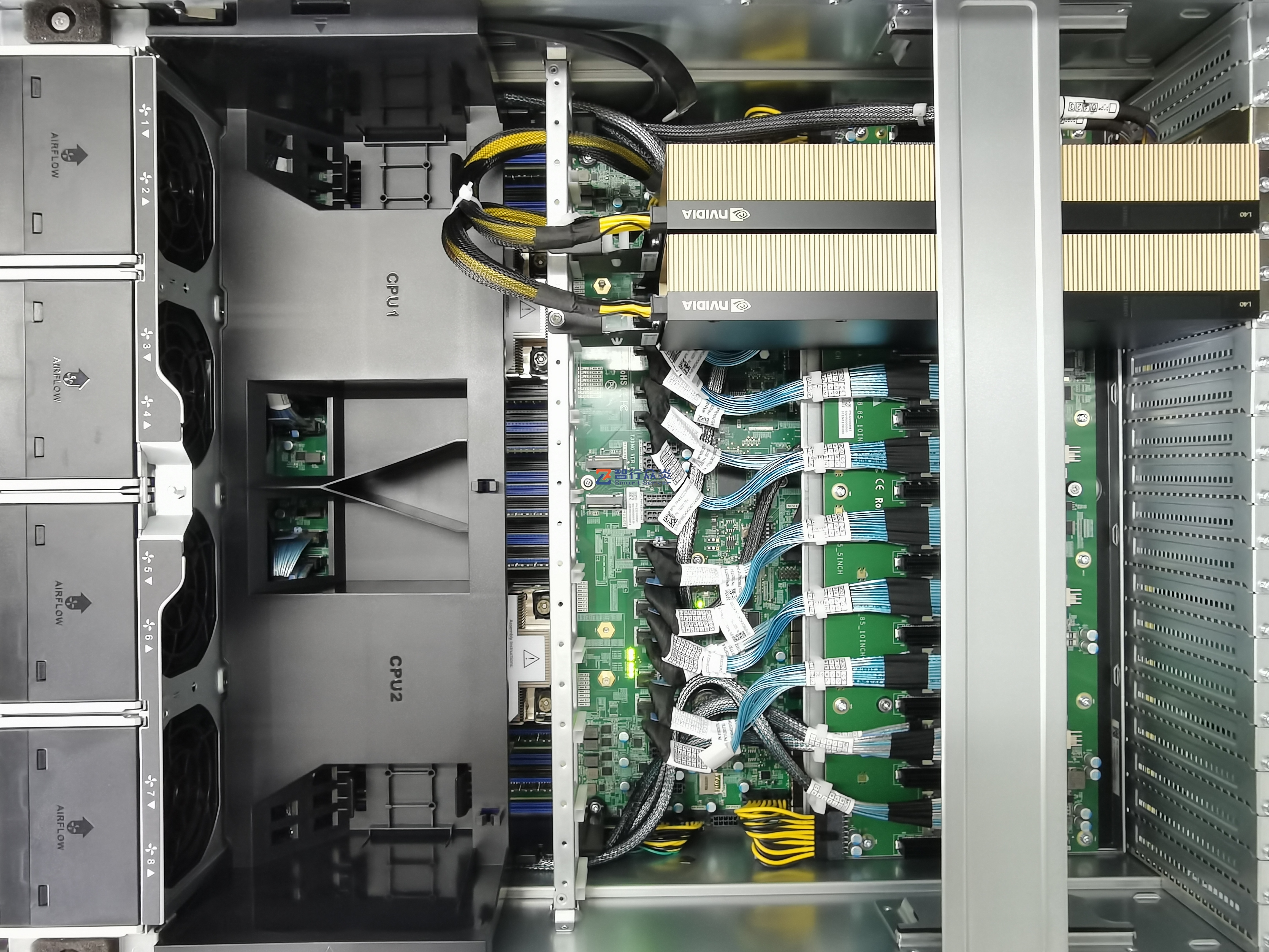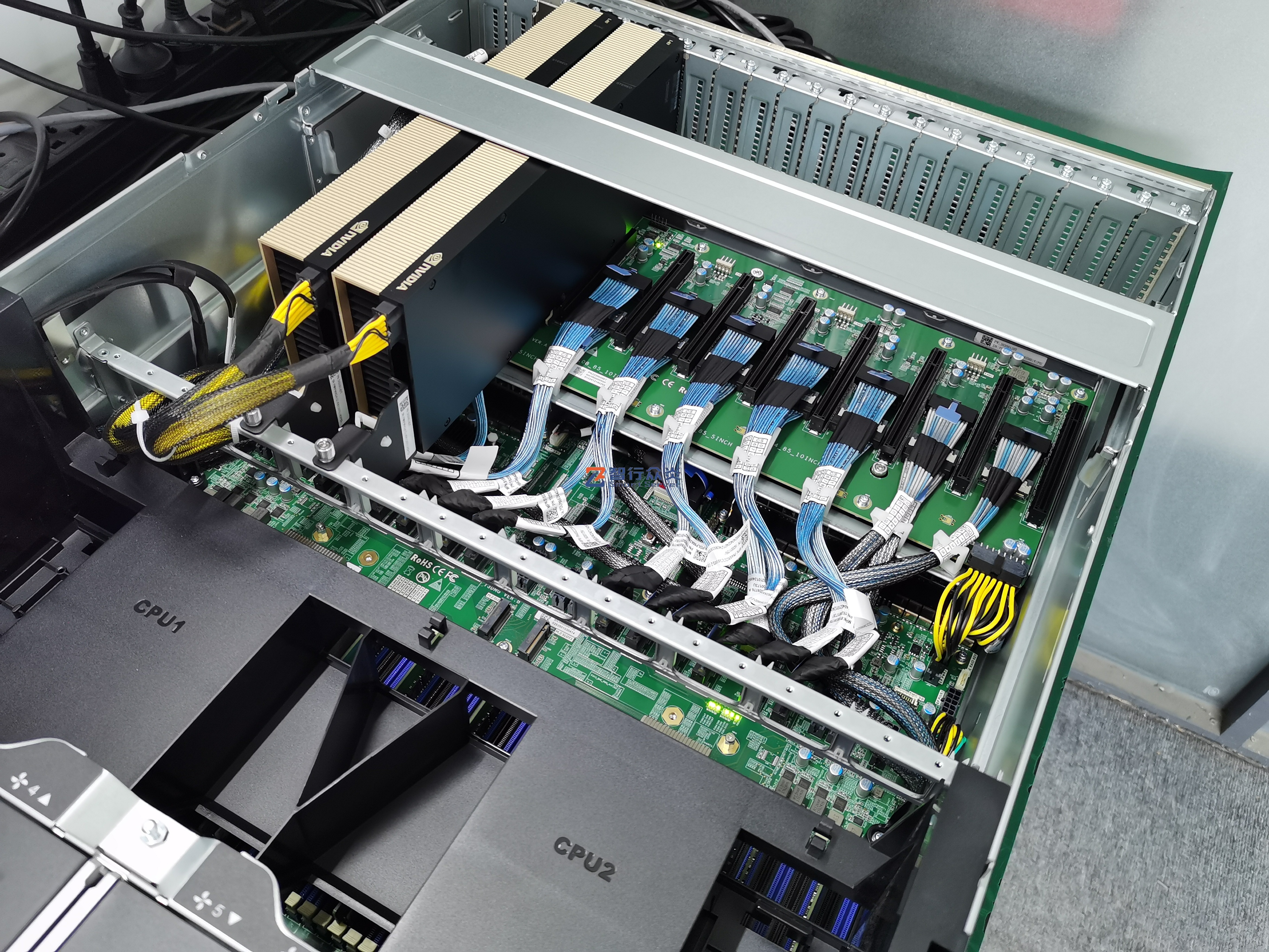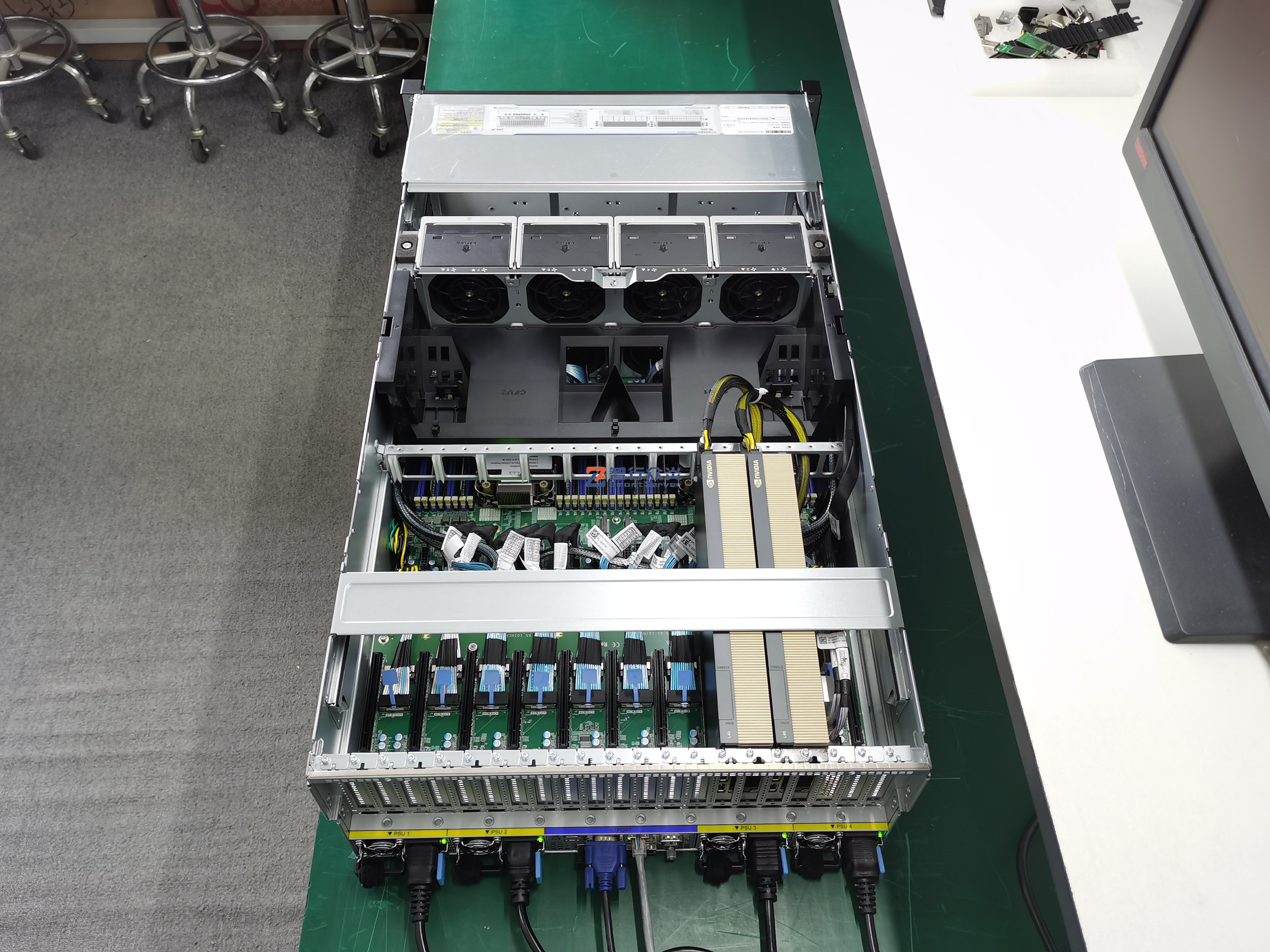 | ■ 支持最多14个PCIe标准插槽 ■ 支持8个GPU+2个PCIe 4.0 x16+2个PCIe 5.0 x16+1个PCIe 5.0 x8 ■ 支持10个GPU+1个PCIe 5.0 x16 ■ 可选支持1张内置RAID或SAS HBA标卡(PCIe 4.0x8) |