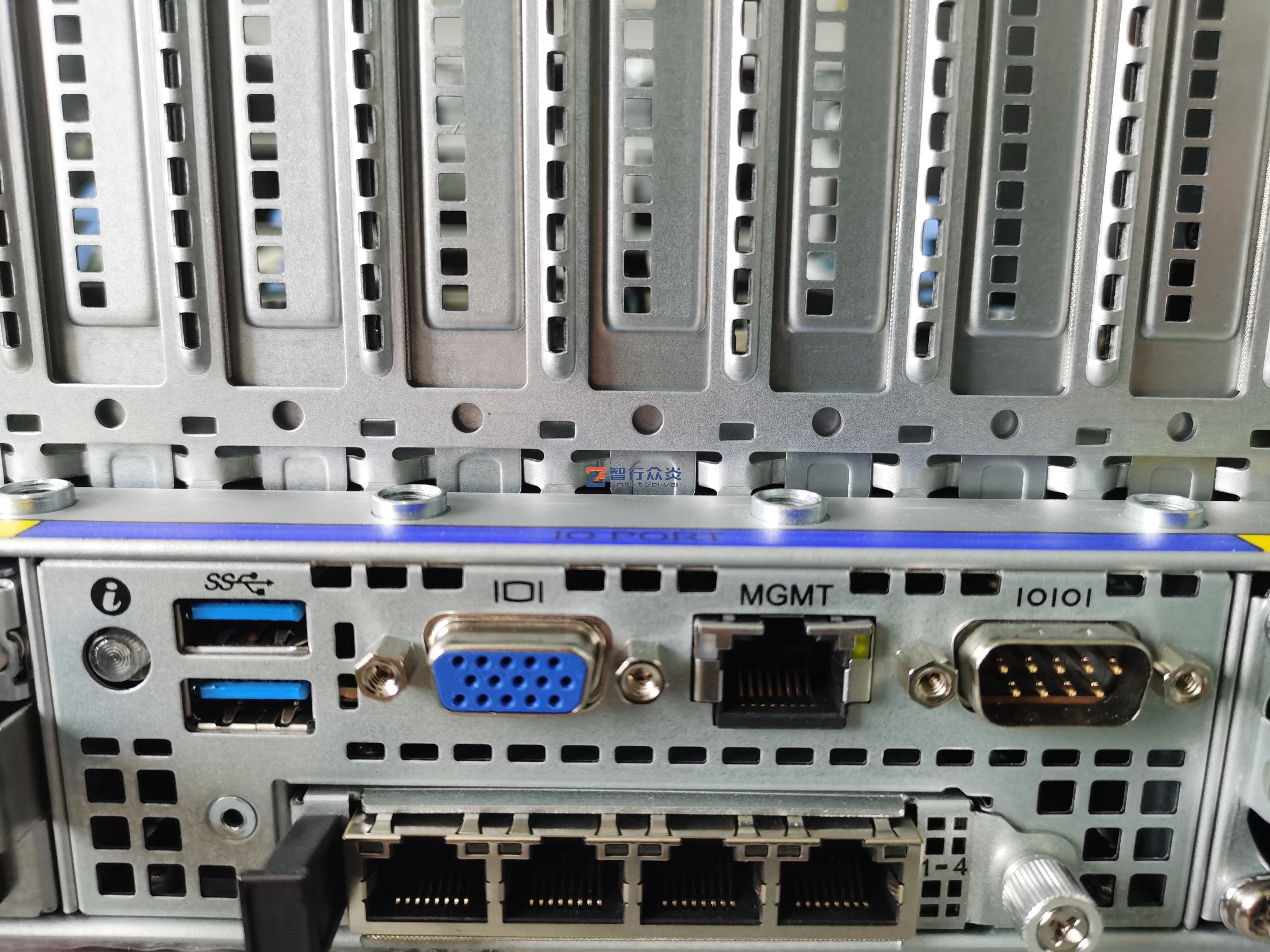 | ■ 前置:2个USB 3.0,1个VGA接口 ■ 后置:1个串口,2个USB 3.0接口,1个VGA接口,1个RJ45管理口 |