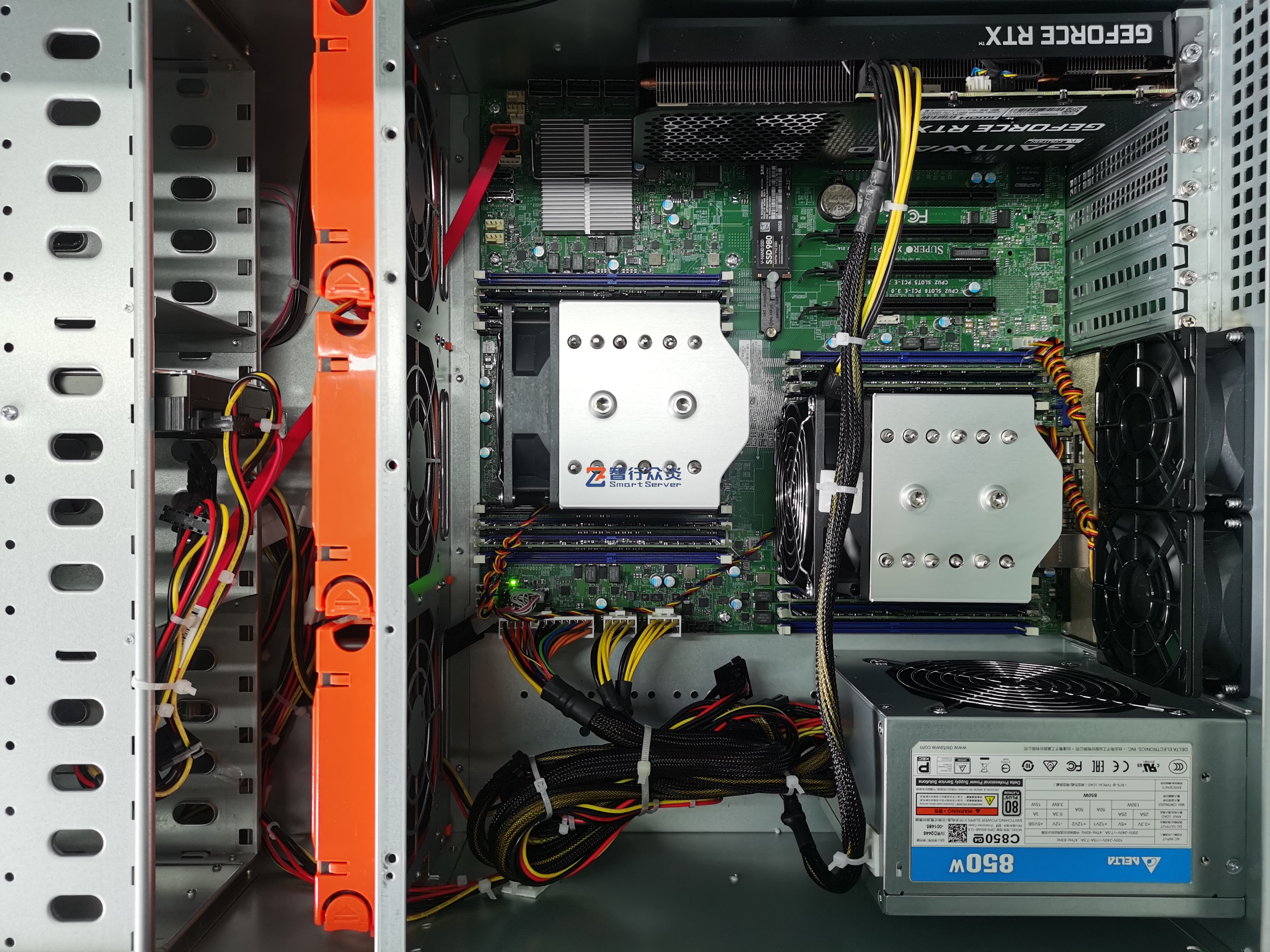 ZXZY-460-X11 Intel 4U双路标准图形工作站,支持1/2颗 第1代/2代 英特尔至强 可扩展系列处理器, 16 DIMM DDR4 内存插槽,集成1个M.2 接口,2个U.2 NVME接口,2个千兆电口, 1个RJ45 管理网口,6个PCIe 扩展插槽,能适用于图形设计、视频编辑、影视动画、人工智能、虚拟仿真、云计算应用等需求。