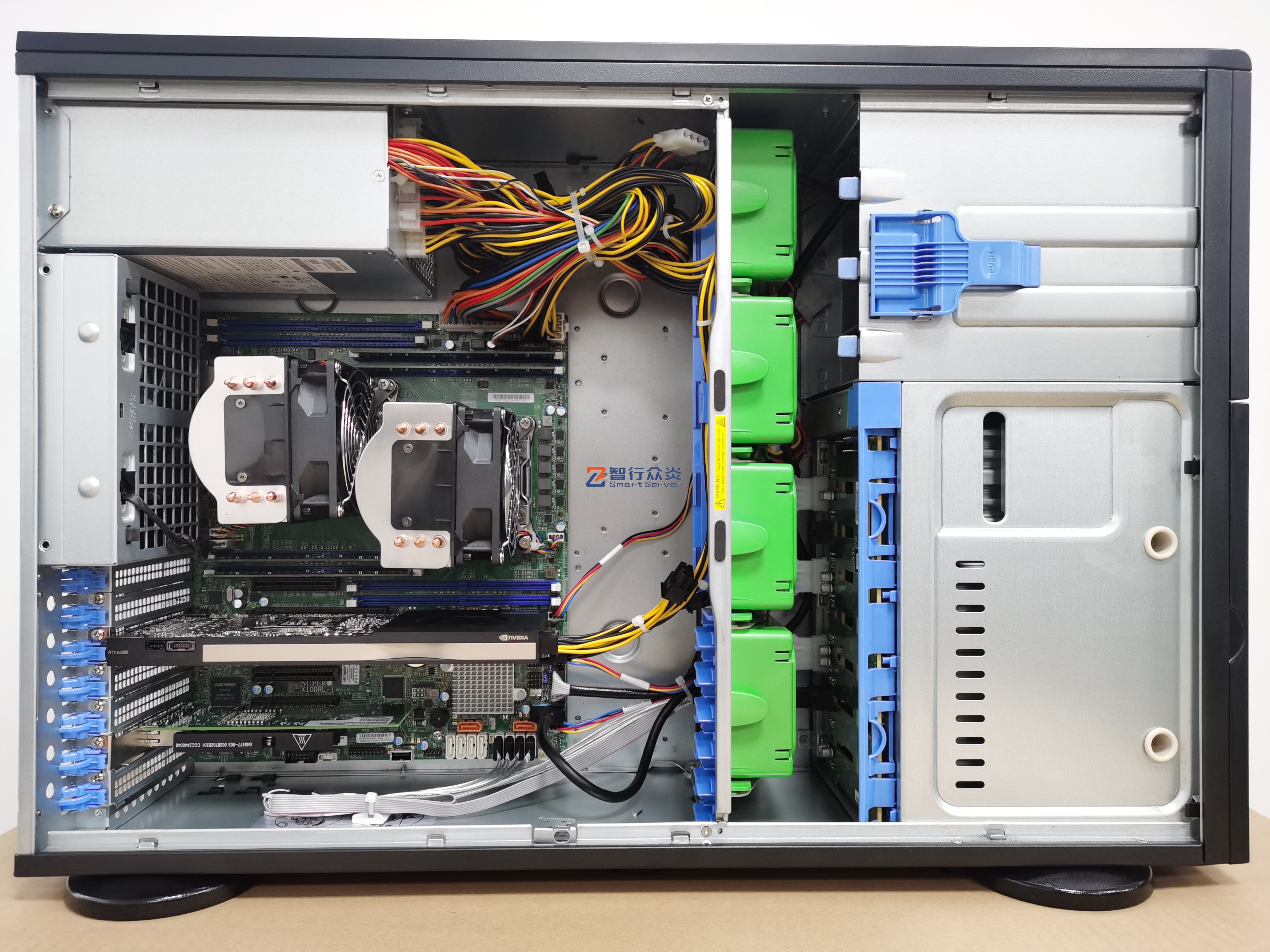 ZXZY-743-X10 Intel双路塔式标准图形工作站,支持1/2 颗 至强 E5-2600 V3/V4 family处理器, 8 DIMM DDR4 内存插槽,2个千兆电口, 1个RJ45 管理网口,6个PCIe 扩展插槽,能适用于图形设计、视频编辑、影视动画、人工智能、虚拟仿真、云计算应用等需求。