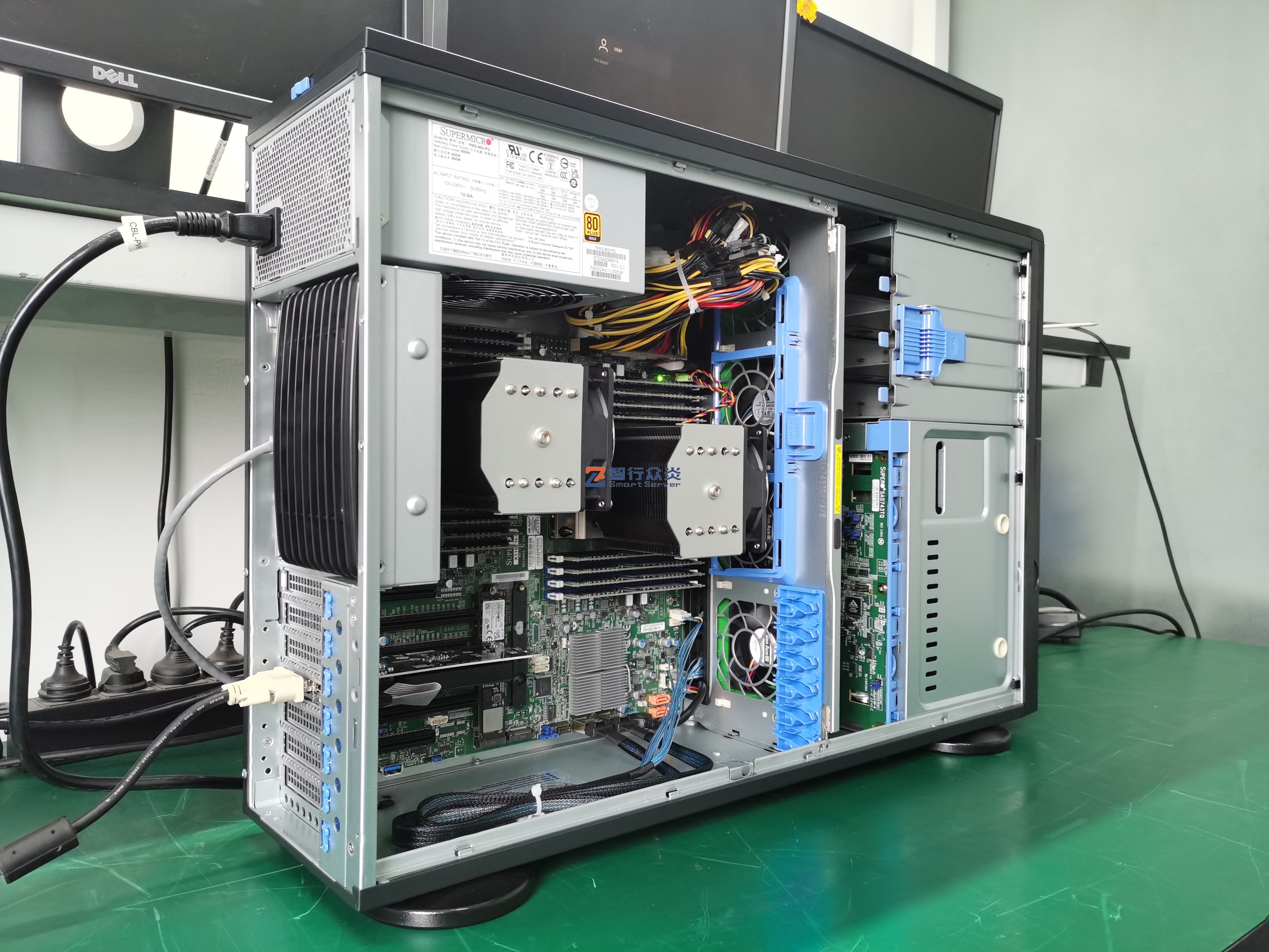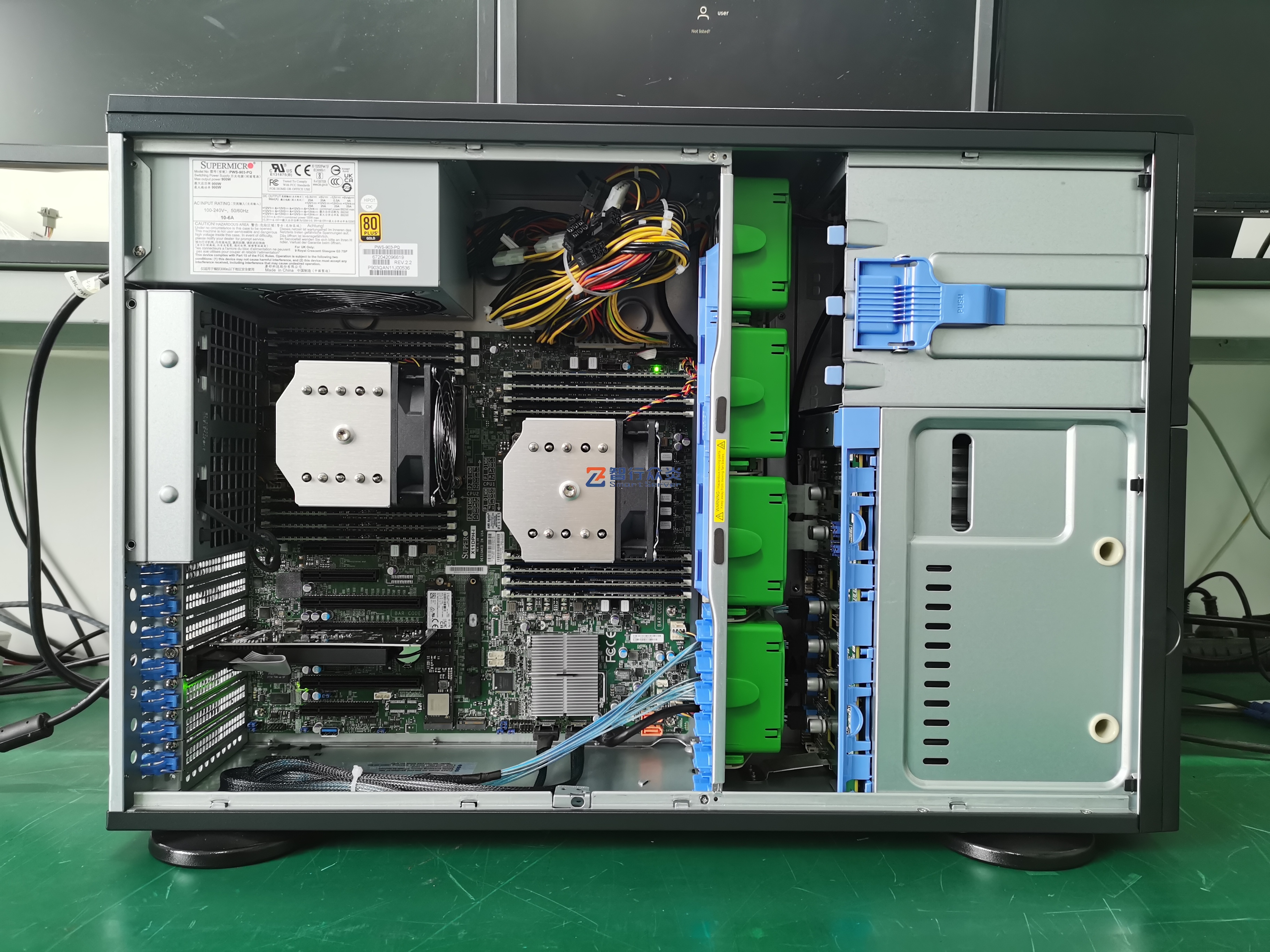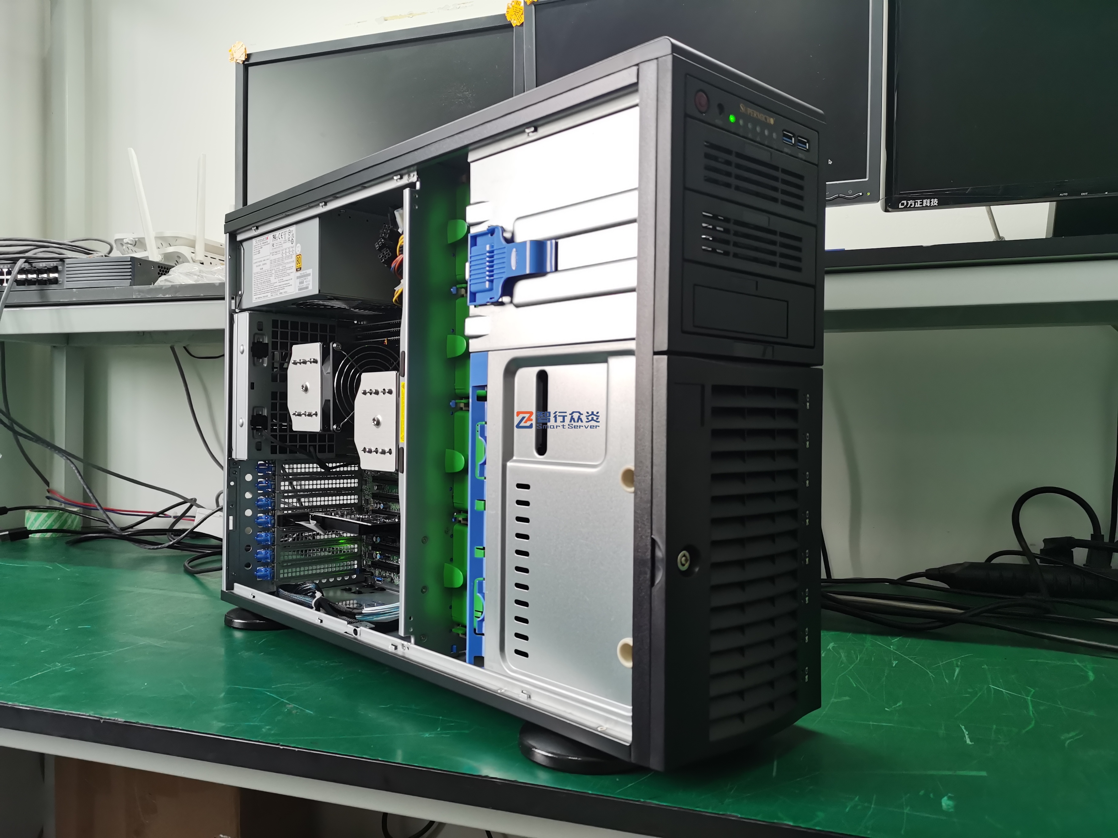 ZXZY-743-X11 Intel双路塔式 标准服务器,支持1/2颗 第1代/2代 英特尔至强 可扩展系列处理器, 16 DIMM DDR4 内存插槽,集成2 个M.2 接口,2个千兆电口, 1个RJ45 管理网口,7个PCIe 扩展插槽,能适用于数据库、软件应用、人工智能、虚拟化、云计算、大数据处理、企业市场或电信业务应用等需求。
