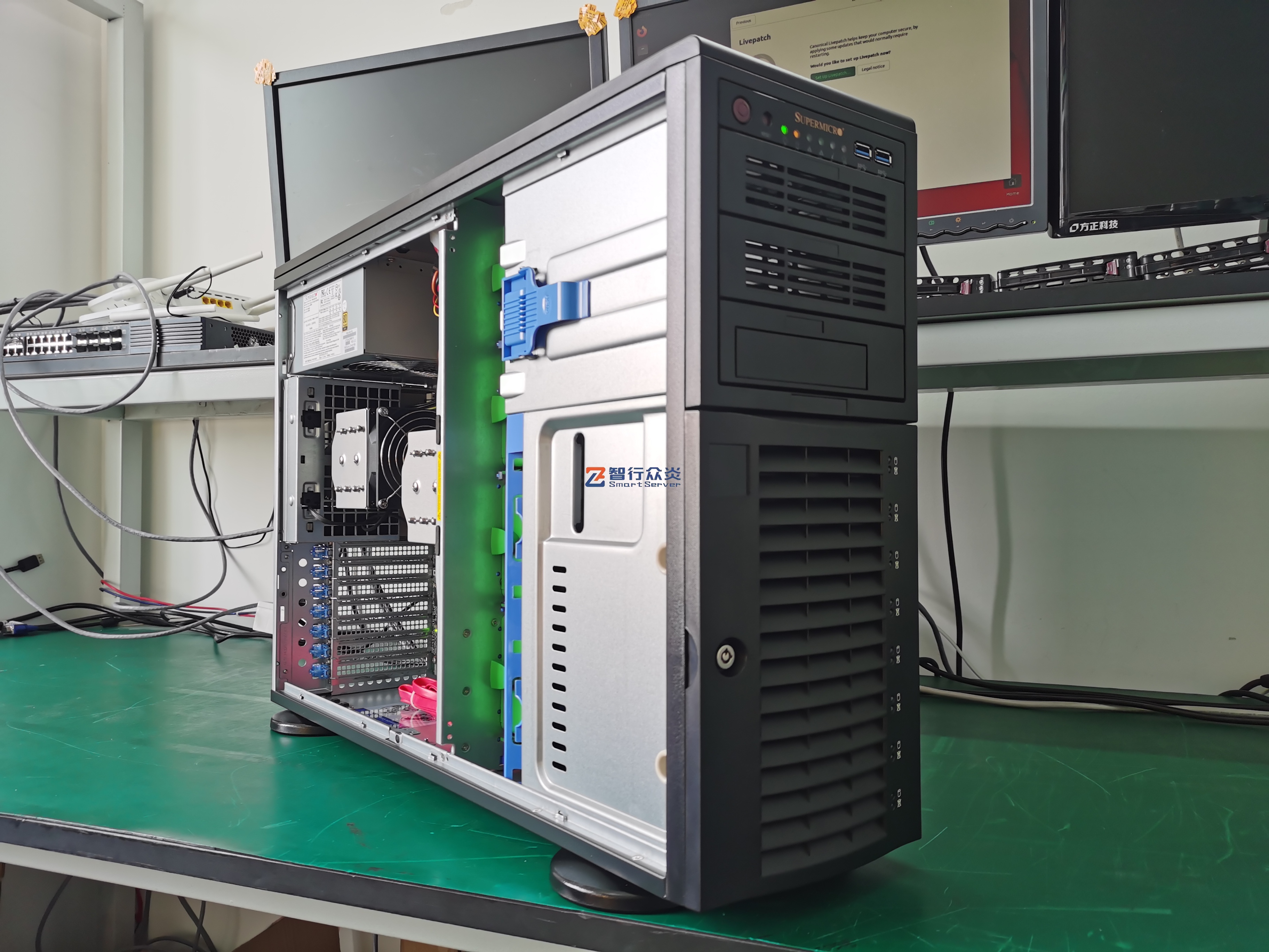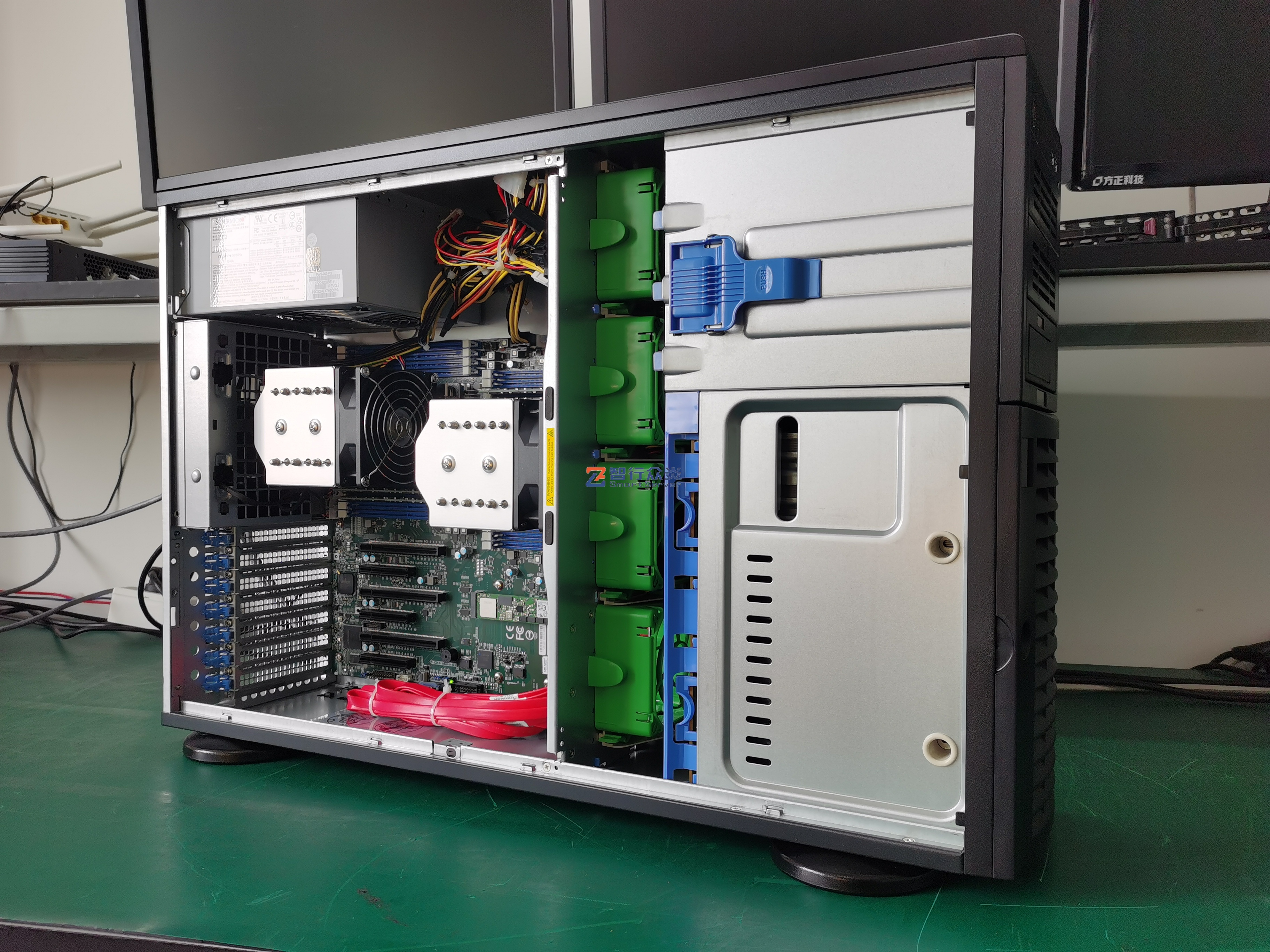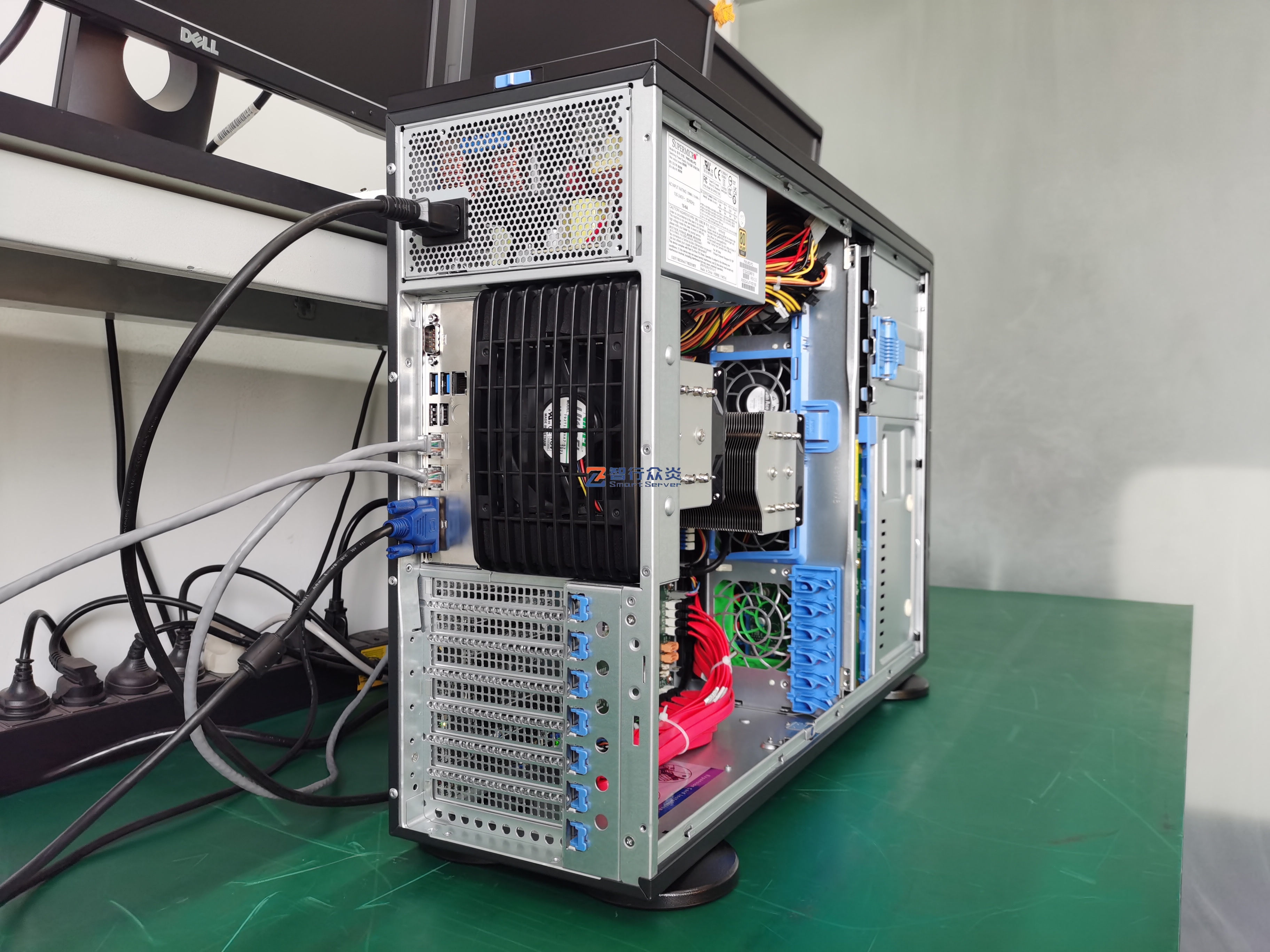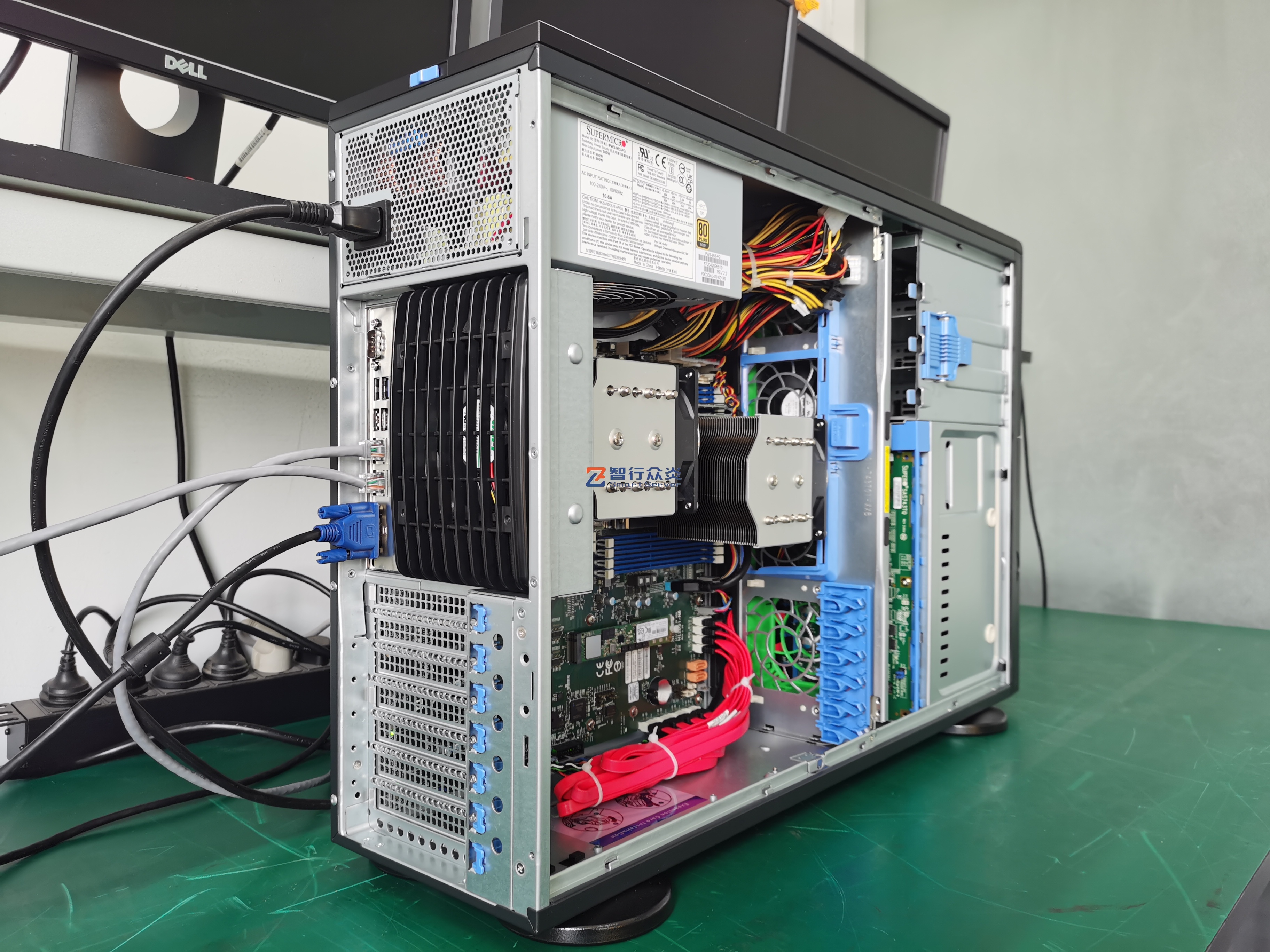 ZXZY-743-H12 AMD双路塔式 标准服务器,支持1/2 颗 7003/7002 Series Processors, 16 DIMM DDR4 内存插槽,集成1 个M.2 接口,4个NVME U.2接口,2个千兆电口, 1个RJ45 管理网口,6个PCIe 扩展插槽,能适用于数据库、软件应用、人工智能、虚拟化、云计算、大数据处理、企业市场或电信业务应用等需求。
