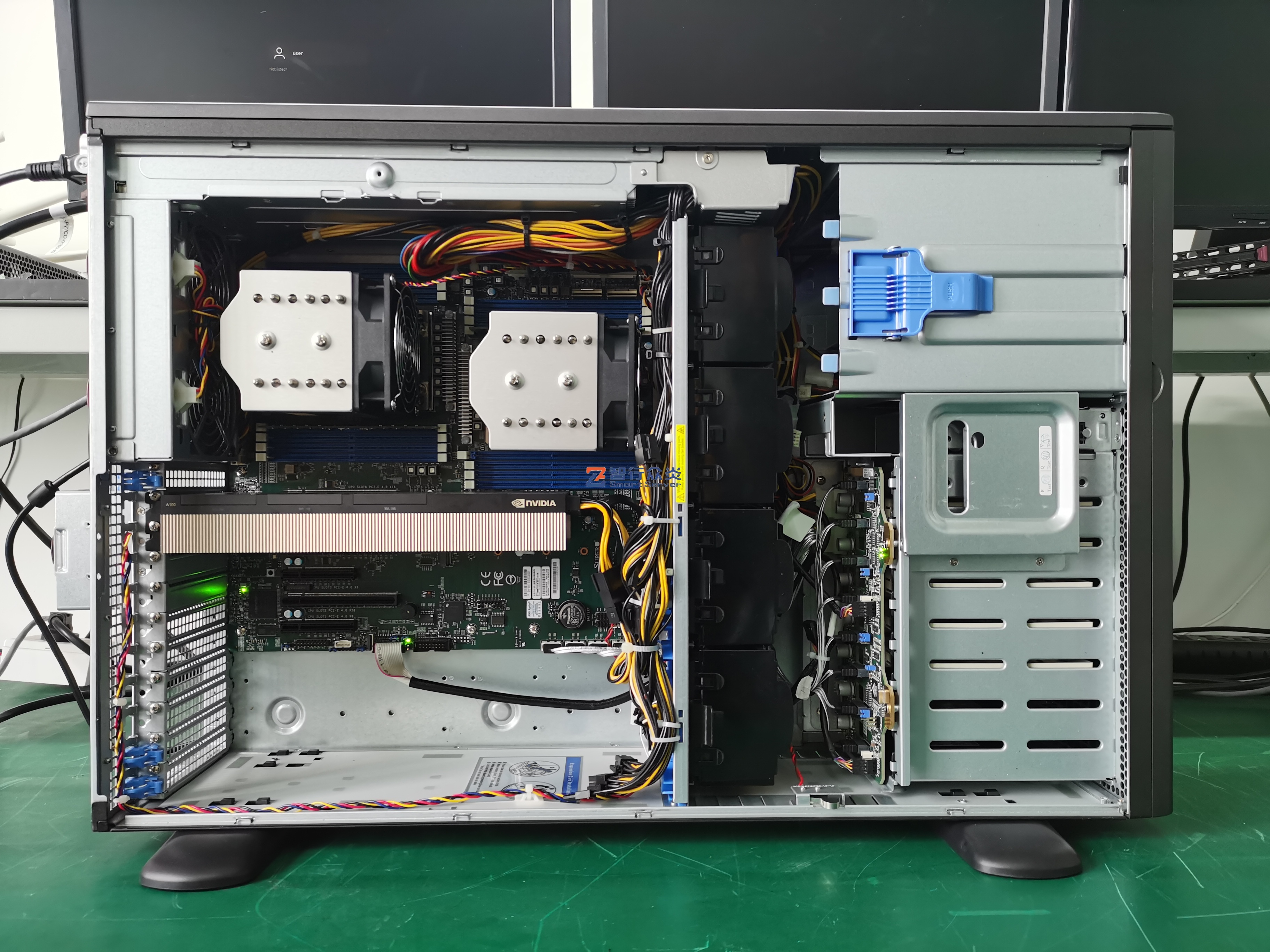 ZXZY-747-H12 AMD 塔式 双路标准服务器,支持1/2 颗 7003/7002 Series Processors, 16 DIMM DDR4 内存插槽,集成1 个M.2 接口,4个NVME U.2接口,2个千兆电口, 1个RJ45 管理网口,6个PCIe 扩展插槽,能适用于高性能计算、数据库、软件应用、人工智能、虚拟化、云计算、大数据处理、企业市场或电信业务应用等需求。