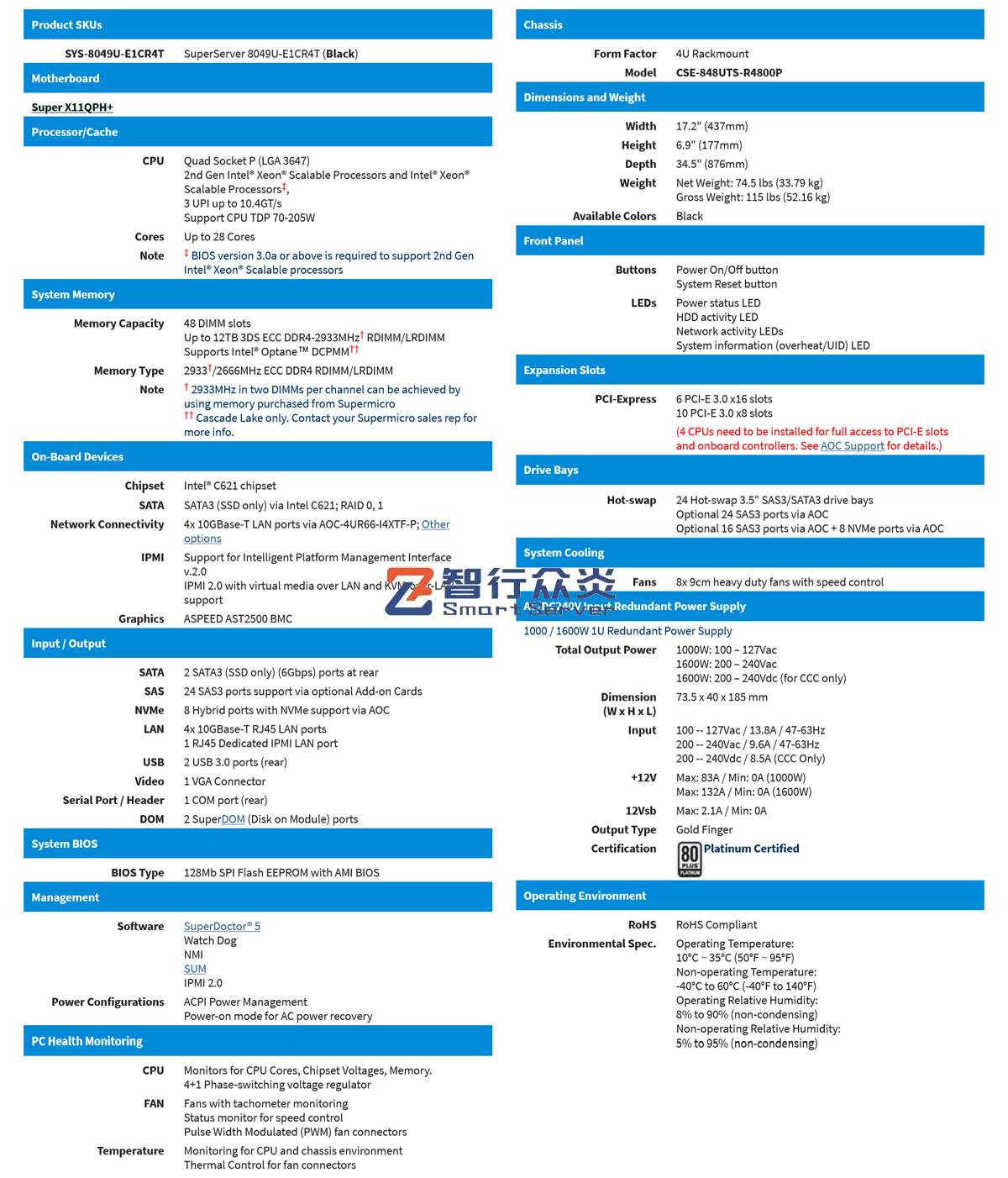 ☆Quad Socket P (LGA 3647) support;2nd Gen. Intel® Xeon® Scalable processors (Cascade Lake/Skylake)