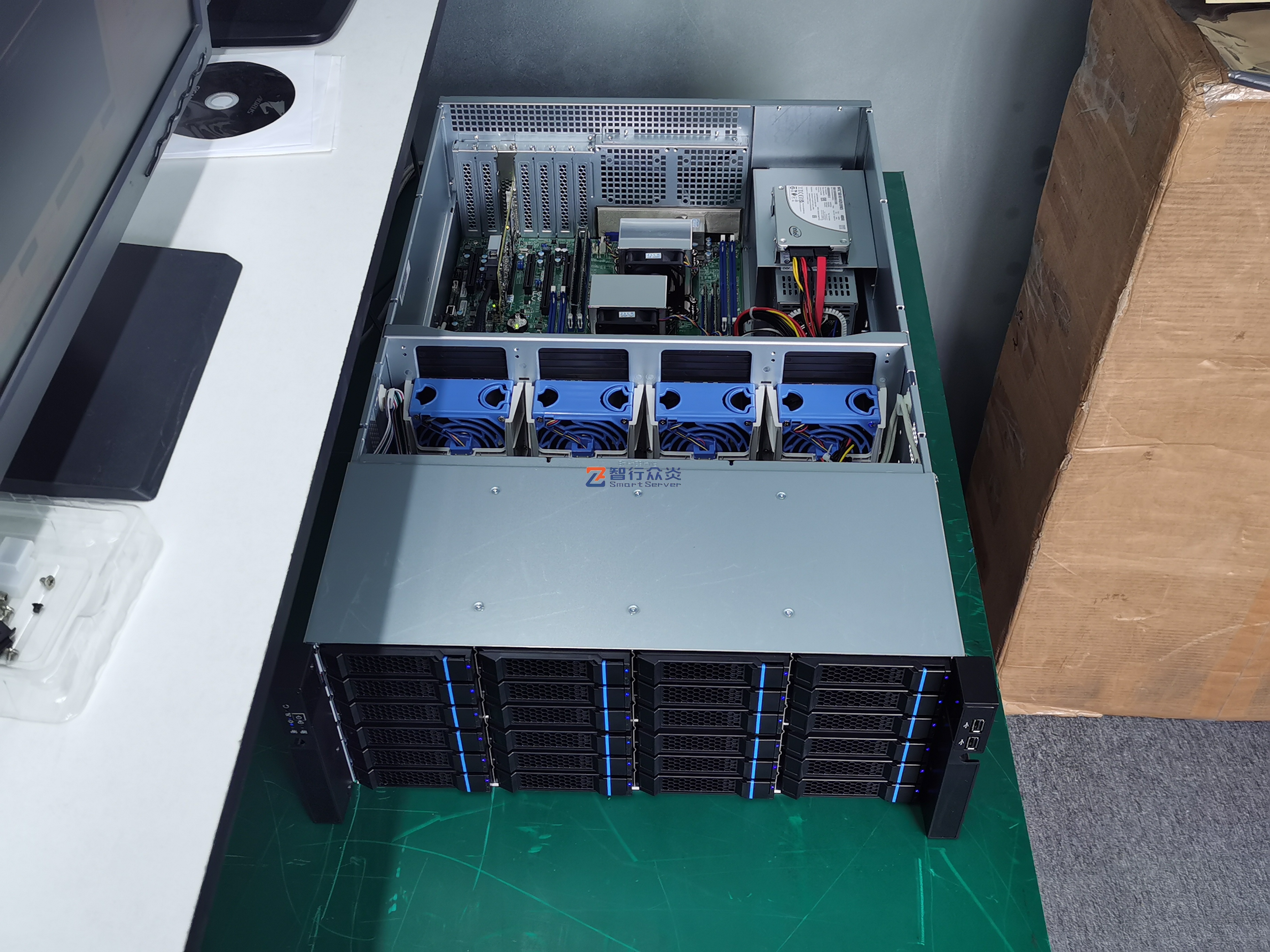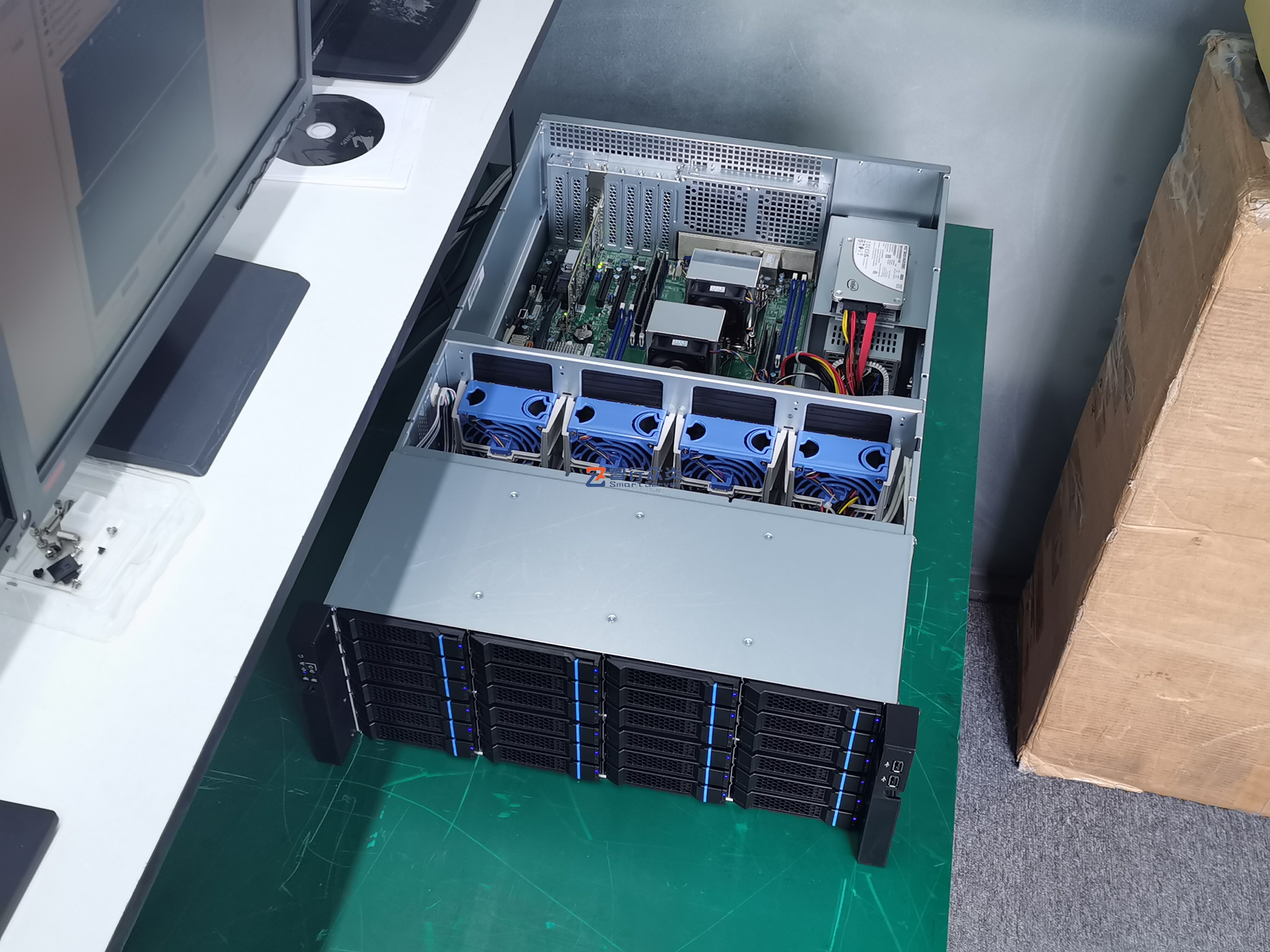 ZXZY-R424D-X10 Intel 4U 24 盘位 双路存储服务器,支持1/2 颗 至强 E5-2600 V3/V4 family处理器, 8 DIMM DDR4 内存插槽, 2个千兆电口, 1个RJ45 管理网口,6个PCIe 扩展插槽,能适用于数据库、存储、安防、监控、软件应用、人工智能、虚拟化、云计算、大数据处理、企业市场或电信业务应用等需求。