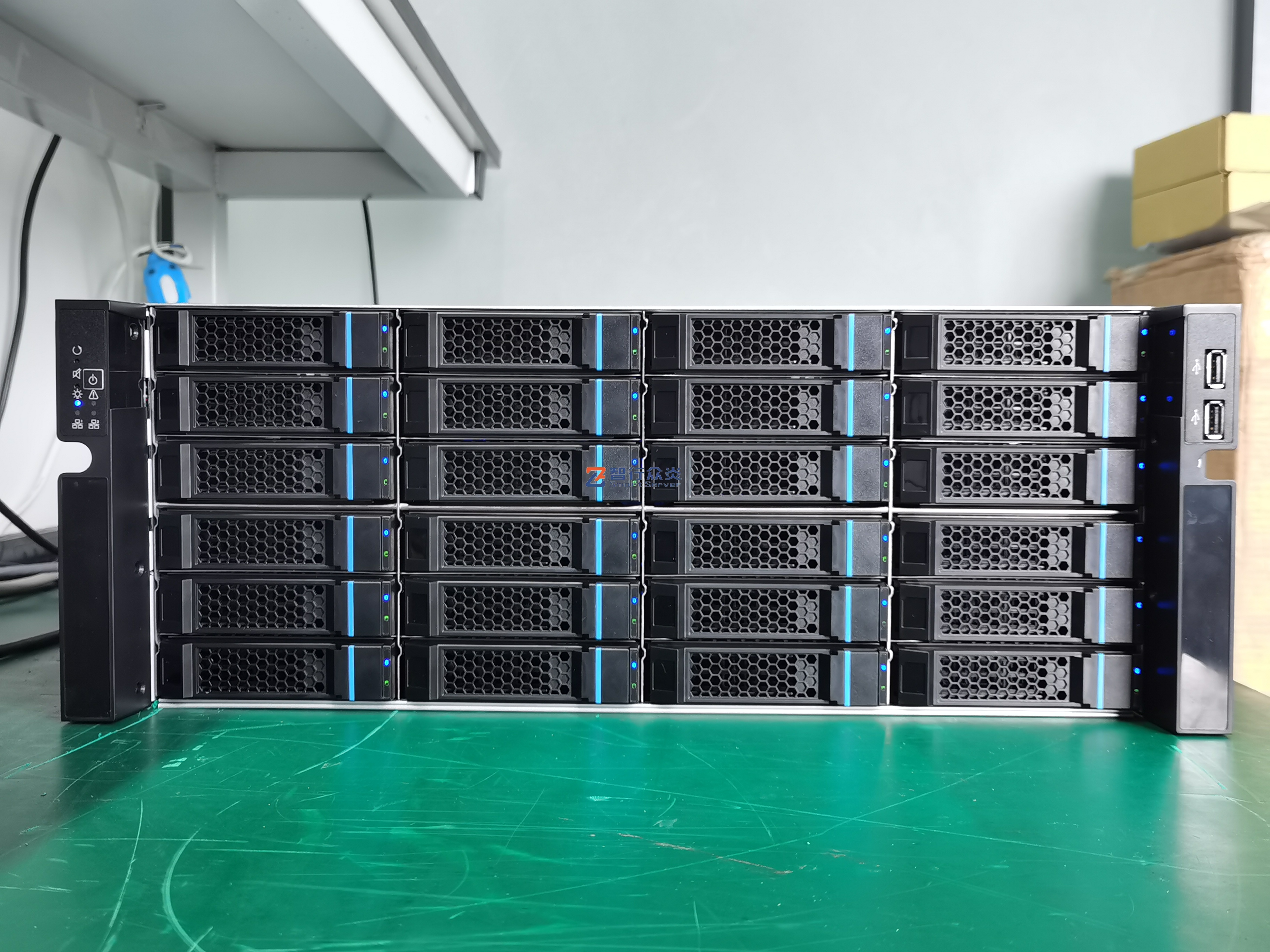 ☆支持 24个3.5寸/ 2.5寸 热插拔硬盘位, 内置 2个 2.5寸 非热插拔硬盘位