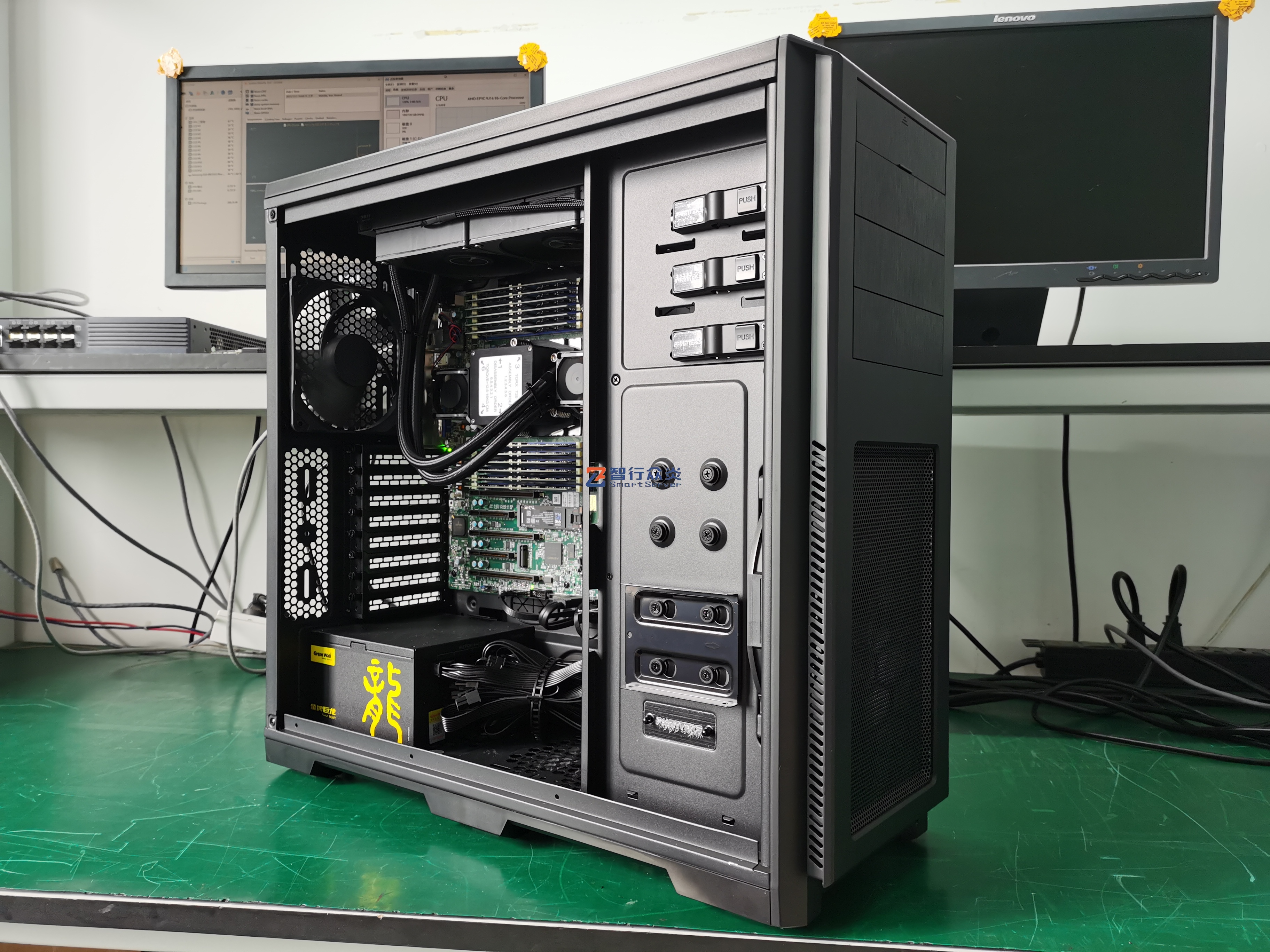 ZXZY-614PC-H13 AMD 塔式单路标准服务器,支持1颗 9004/9005 Series Processors, 12 DIMM DDR5 内存插槽,集成2 个M.2 接口,4个NVME U.2接口,2个千兆电口, 1个RJ45 管理网口,5个PCIe 5.0扩展插槽,能适用于高性能计算、数据库、软件应用、人工智能、虚拟化、云计算、大数据处理、企业市场或电信业务应用等需求。