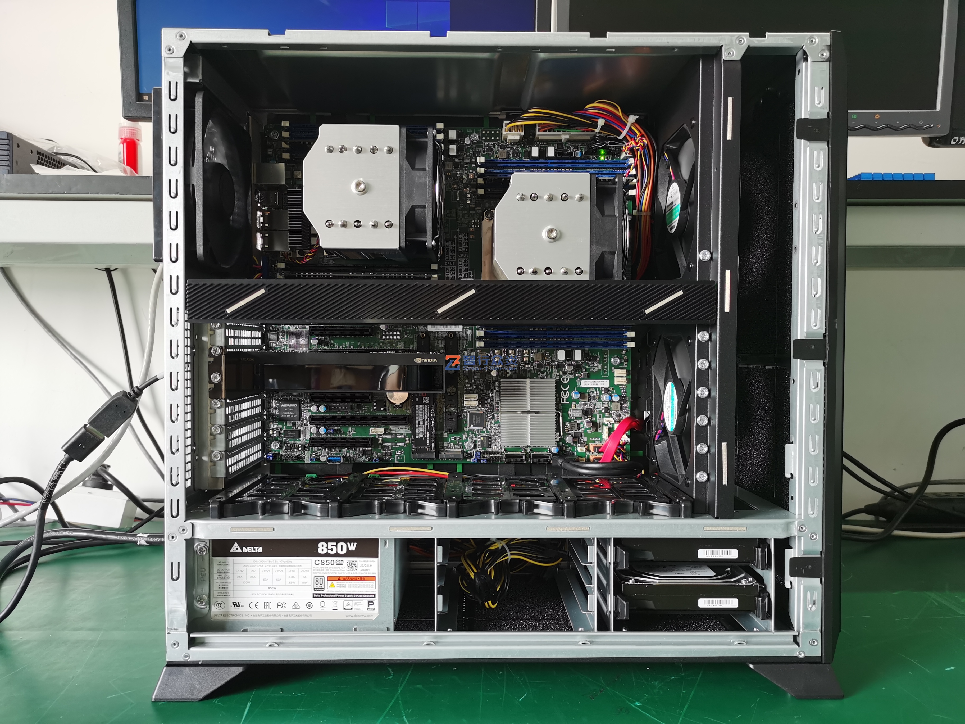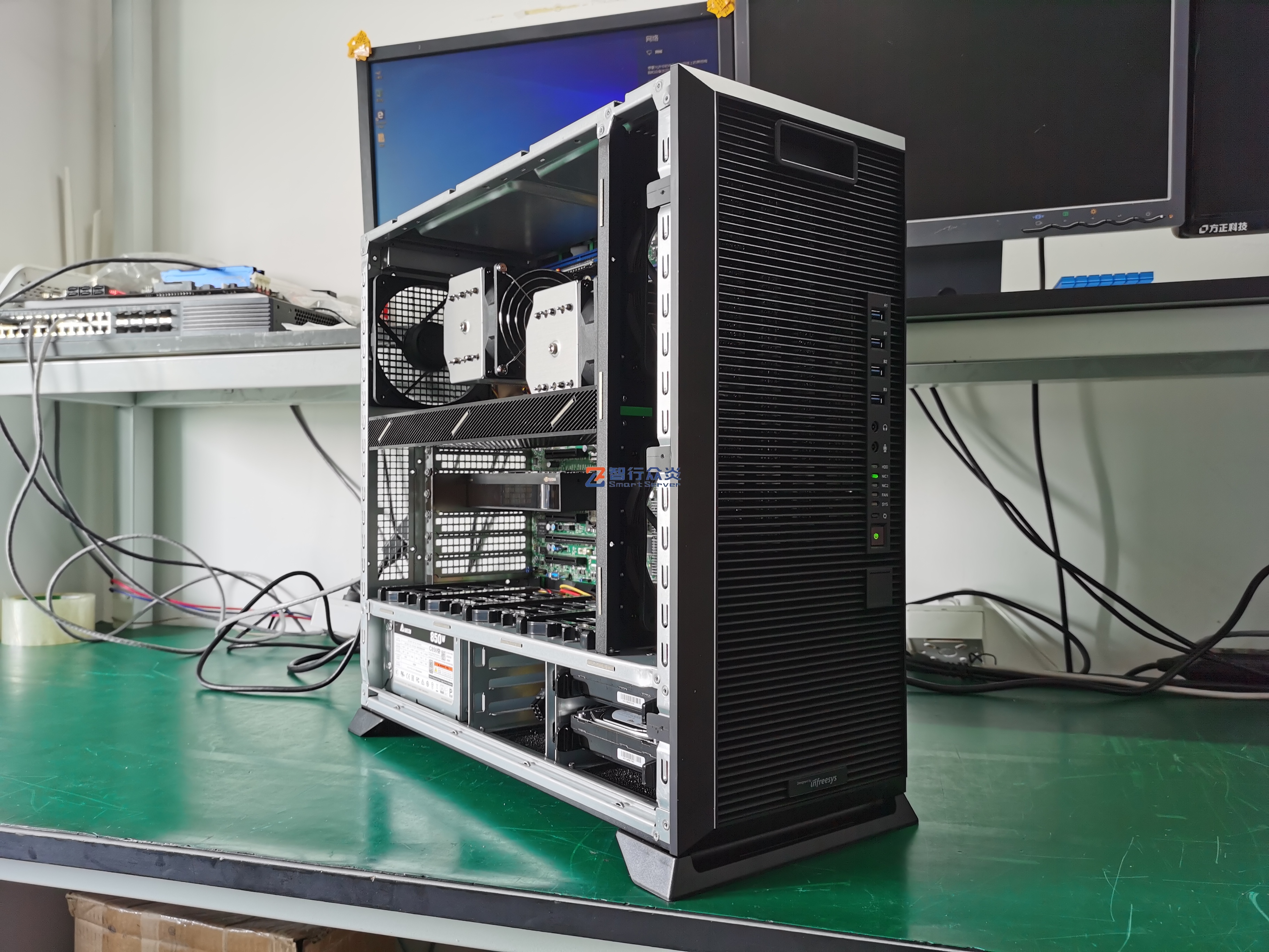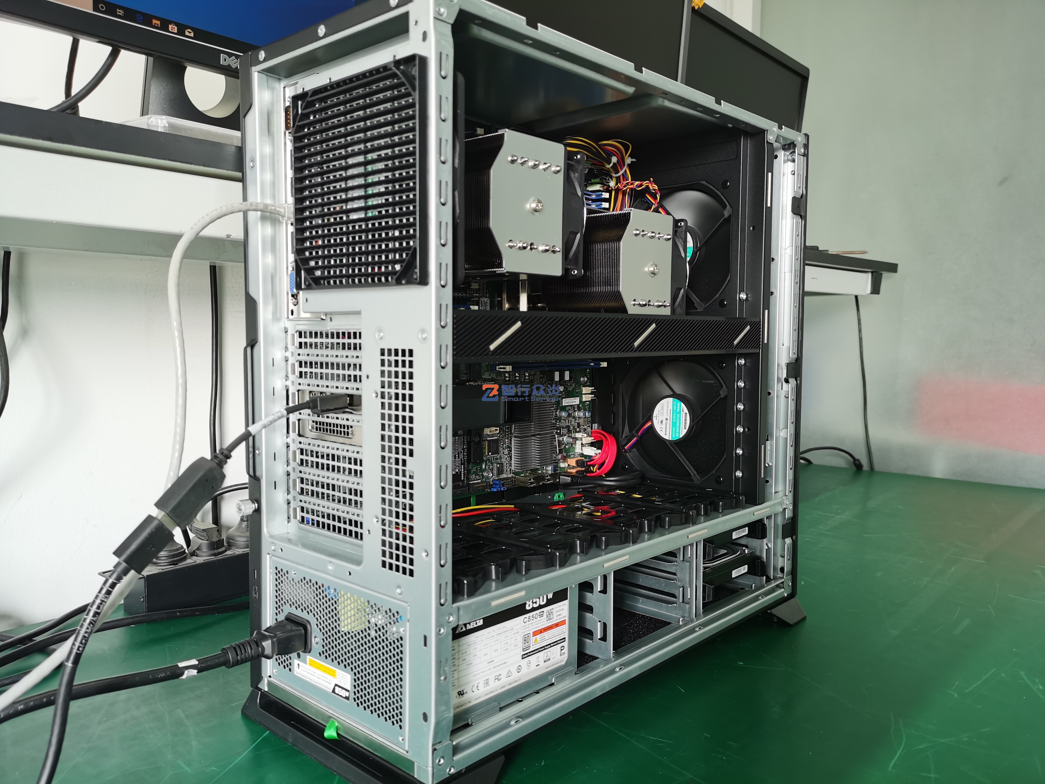 ZXZY-CD01-X11-A2000 Intel 塔式双路标准图形工作站,支持1/2颗 第1代/2代 英特尔至强 可扩展系列处理器, 16 DIMM DDR4 内存插槽,集成2个M.2 接口,2个千兆电口, 1个RJ45 管理网口,7个PCIe 扩展插槽,能适用于图形设计、视频编辑、影视动画、人工智能、虚拟仿真、云计算应用等需求。