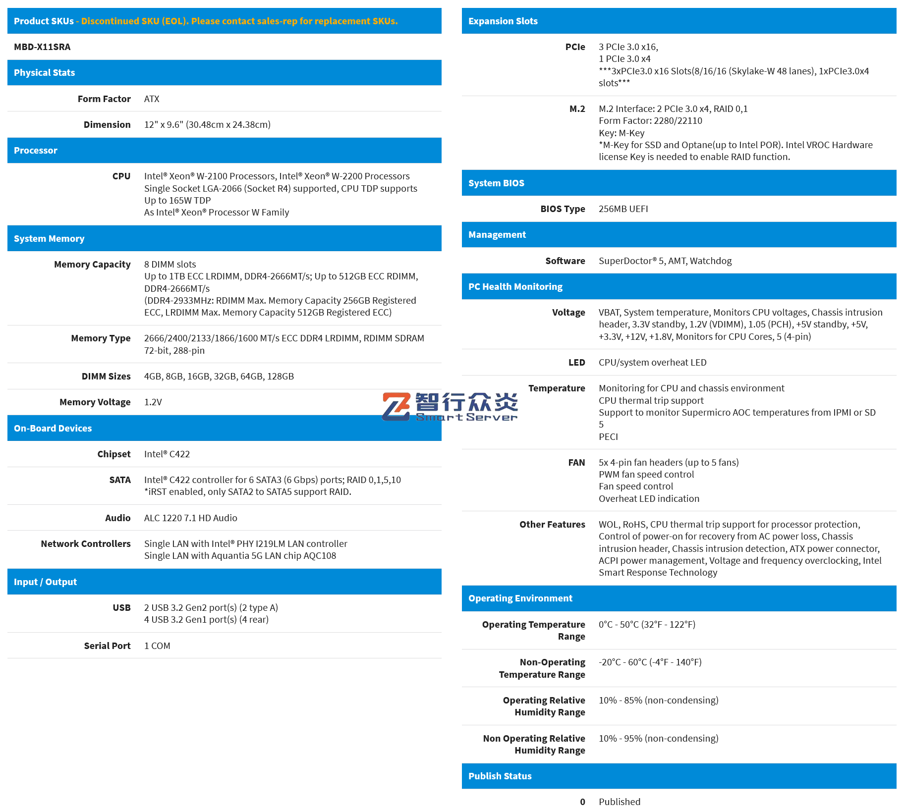 ☆支持1 颗 Intel Xeon W-2100 Processors, Intel Xeon W-2200 Processors,Single Socket LGA-2066 (Socket R4) , 最大支持165W